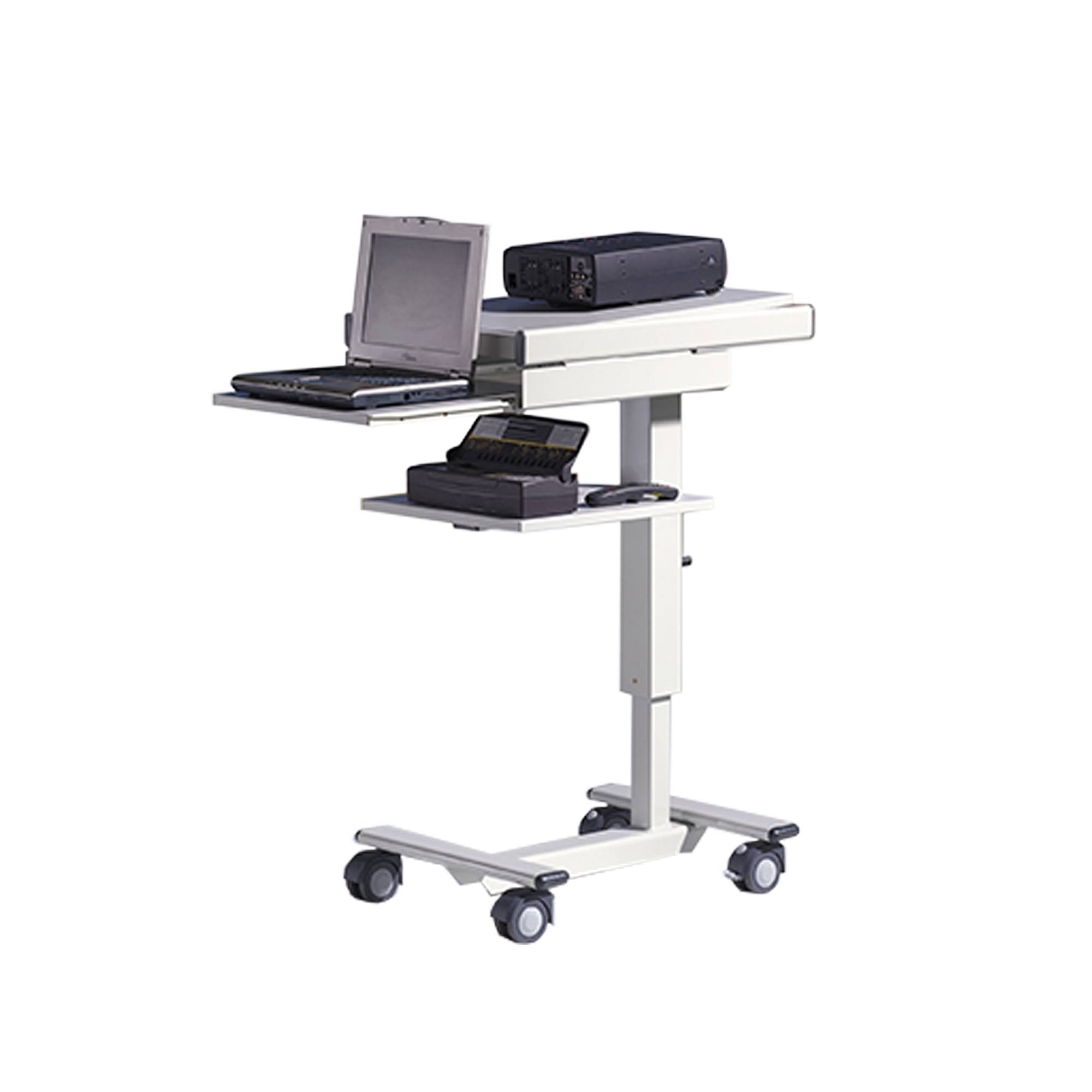 Unser LCD-Projektionswagen auf 4 Rollen, davon 2 feststellbar, und manueller Höhenverstellung, ist perfekt geeignet, um Ihren Beamer darauf abzustellen. Unterhalb der Beamerebene befindet sich eine zweite Ebene für Ihren Laptop oder andere Geräte. Diese ist ausziehbar mit einer maximalen Stellfläche von 39x41 cm. Darunter ist eine weitere Ablage beispielweise für Videoplayer. Die obere Geräteebene ist durch ein Handrad neigbar.