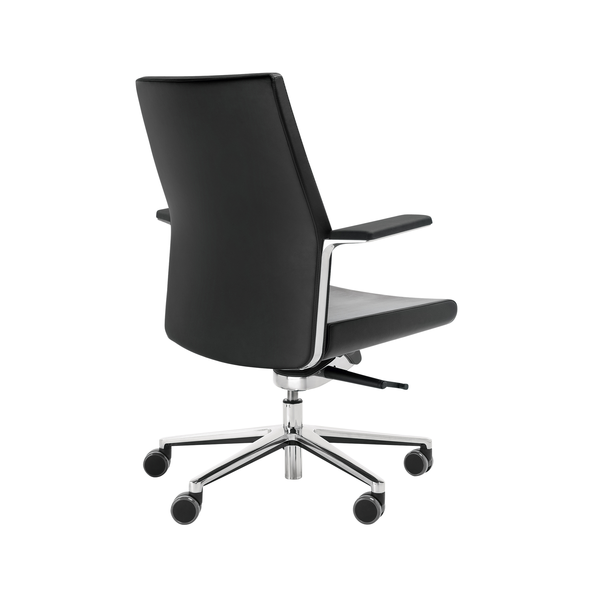 Das standfeste Drehkreuz aus poliertem Aluminium rundet das Design perfekt ab und garantiert eine hohe Stabilität. Zudem ist der Sessel höhenverstellbar dank einer praktischen Gasdruckfeder, die Ihnen die optimale Anpassung an Ihre Körpergröße ermöglicht.