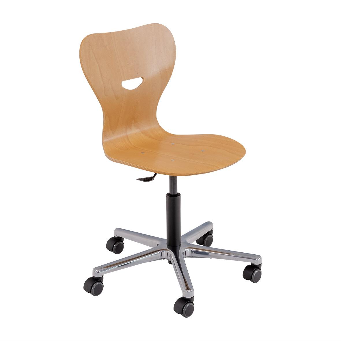 Höhenverstellbarer Drehstuhl mit Sperrholz Sitzschale, Sitzhöhe 520 bis 769 mm, HV3
