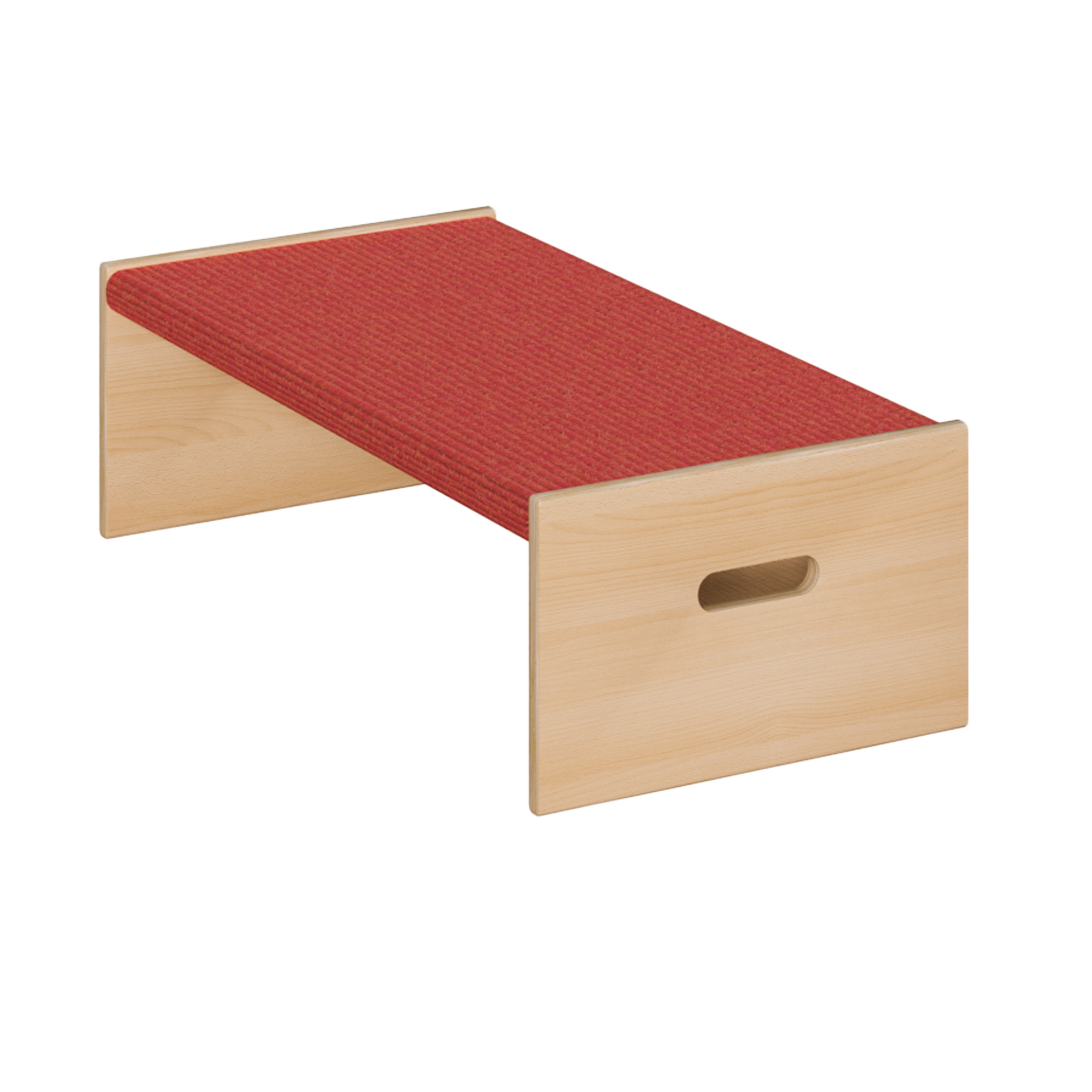 Ein stabiles Podest mit weicher Tretford®-Teppichoberfläche ist die Voraussetzung für fast alle kreativen Spiele! Egal, ob geklettert oder balanciert wird, ob Steigen angesagt ist oder ein Bühne zu bauen ist, das offene Rechteckpodest ist ein wichtiges Basiselement. Ebenso ist die Gestaltung von Lese- und Spielecken mühelos möglich. Die gerundeten Kanten der Multiplexkonstruktion und besonders die großen Kantenradien der sehr stabilen Teppichplatte reduzieren das Verletzungsrisiko auf ein minimale Wahrscheinlichkeit. Durch seitlich angeordnete funktionelle Grifflöcher kann das Podest mühelos umgebaut, gehoben, verschoben, weggeräumt oder auch gestapelt werden. Das Multiplexmaterial besteht aus heller freundlicher Birke, die wir für einen langen Einsatz mehrfach transparent lackiert haben.
