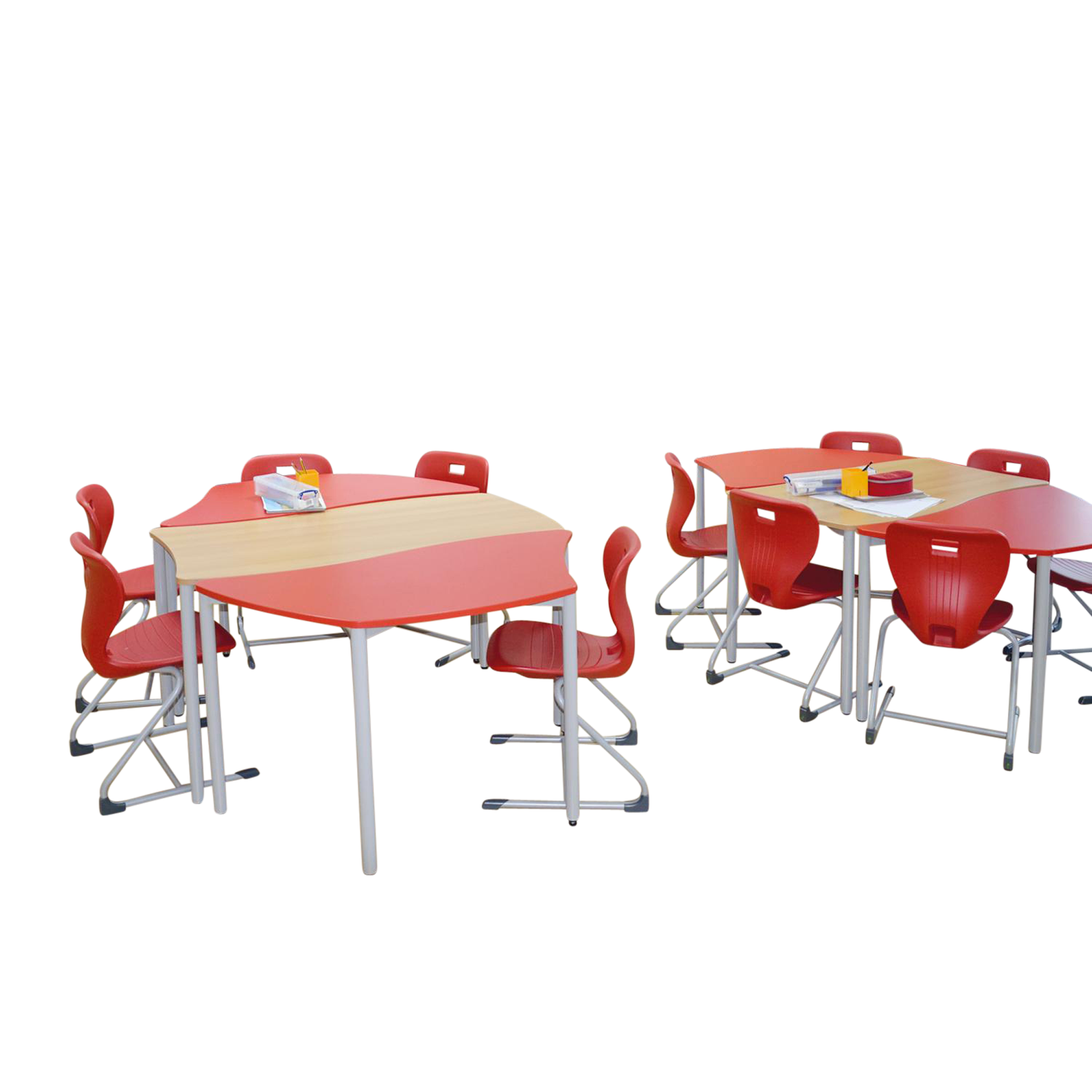 Der Wellentisch Trapez ist ideal für Büros, Schulen und Gemeinschaftsräume. Die robuste Konstruktion und hochwertige Verarbeitung sorgen dafür, dass der Tisch den täglichen Anforderungen standhält.