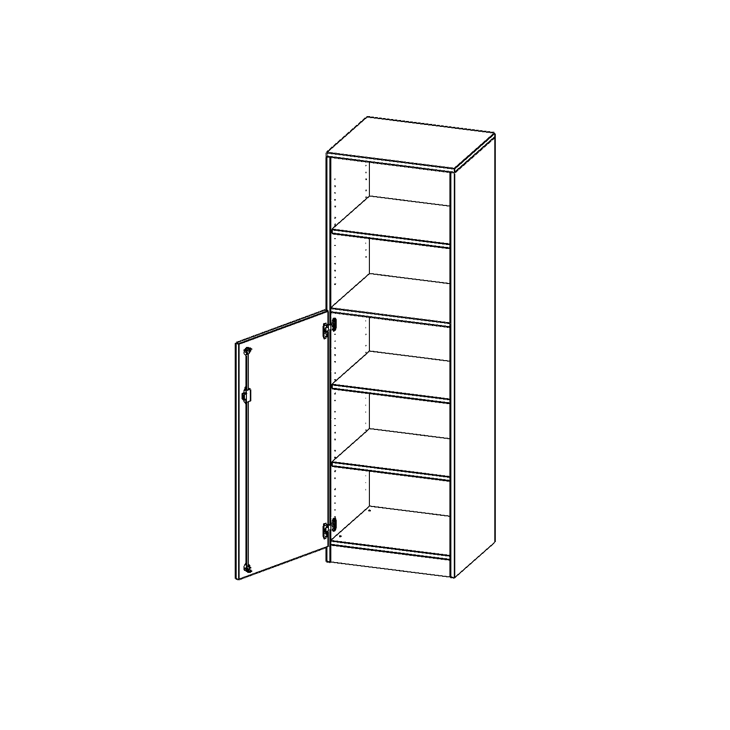 B/H/T: 60x190x50 cm, 1 Tür, abschließbar, Tür öffnet nach links, mit Sockel (81 mm)