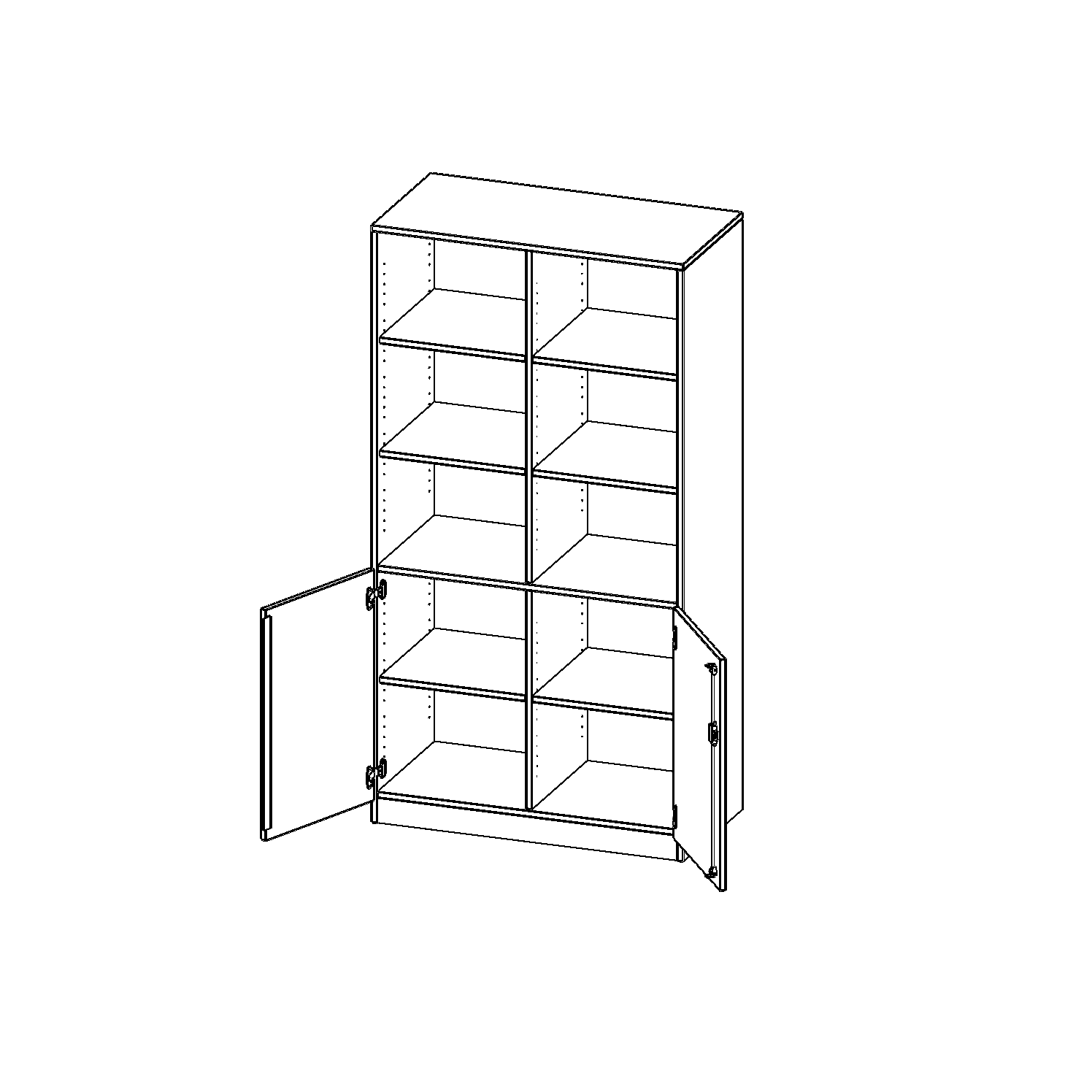 Alle Kombischränke werden aus melaminharzbeschichteter E1-Feinspanplatte gefertigt, die FSC zertifiziert und formaldehydfrei sind. Als Kanten verwenden wir besonders robuste 2 mm starke ABS Kanten, die unter hoher Temperatur fest verleimt werden. Bitte wählen Sie Ihr Wunschdekor aus unserer Dekorpalette aus. Die Einlegeböden sind im Raster von 32 mm verstellbar. Unsere hochwertigen Bodenträger verfügen über einen "Ausziehstop", so wird verhindert, dass Böden mit Inhalt darauf aus dem Regal oder Schrank rutschen können. Die Türen lassen sich dank 270° öffnender Scharniere an den Korpus anlegen. Sie sind mit einem Schloss verschließbar. An den Türen befindet sich eine Staublippe.