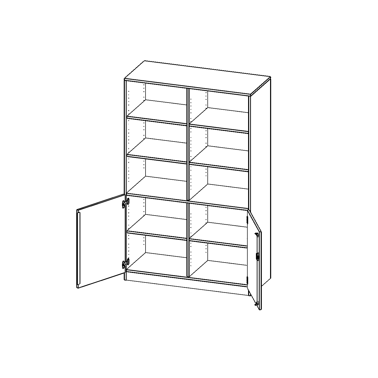 Alle Kombischränke werden aus melaminharzbeschichteter E1-Feinspanplatte gefertigt, die FSC zertifiziert und formaldehydfrei sind. Als Kanten verwenden wir besonders robuste 2 mm starke ABS Kanten, die unter hoher Temperatur fest verleimt werden. Bitte wählen Sie Ihr Wunschdekor aus unserer Dekorpalette aus. Die Einlegeböden sind im Raster von 32 mm verstellbar. Unsere hochwertigen Bodenträger verfügen über einen "Ausziehstop", so wird verhindert, dass Böden mit Inhalt darauf aus dem Regal oder Schrank rutschen können. Die Türen lassen sich dank 270° öffnender Scharniere an den Korpus anlegen. Sie sind mit einem Schloss verschließbar. An den Türen befindet sich eine Staublippe.