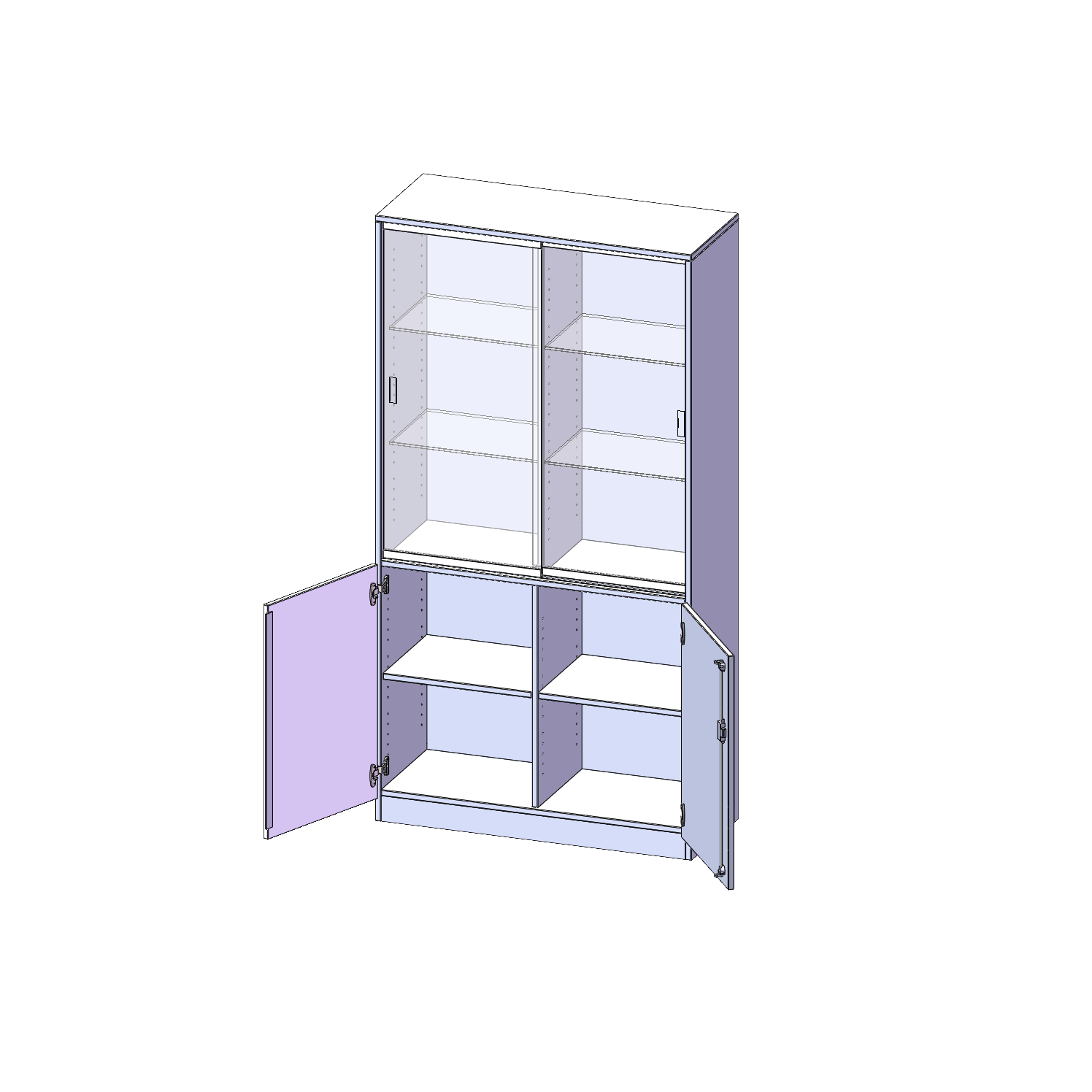 Produkt Bild Kombischrank, 5 Ordnerhöhen, Drehtüren unten (2 OH), Glasschiebetüren oben (3 OH) - Serie evo180 V10042T3GSM Produkt Bild Kombischrank, 5 Ordnerhöhen, Drehtüren unten (2 OH), Glasschiebetüren oben (3 OH) - Serie evo180 V10042T3GSM