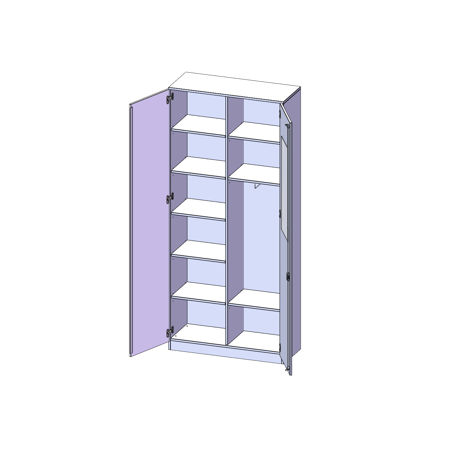 • eine Seite mit Fachböden, eine Seite mit Garderobenstange