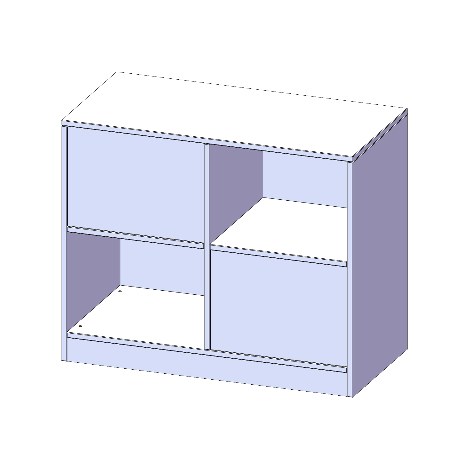 B/H/T: 100x82x50 cm, 4 Fächer, wechselseitig angeordnet, mit Sockel (81 mm)