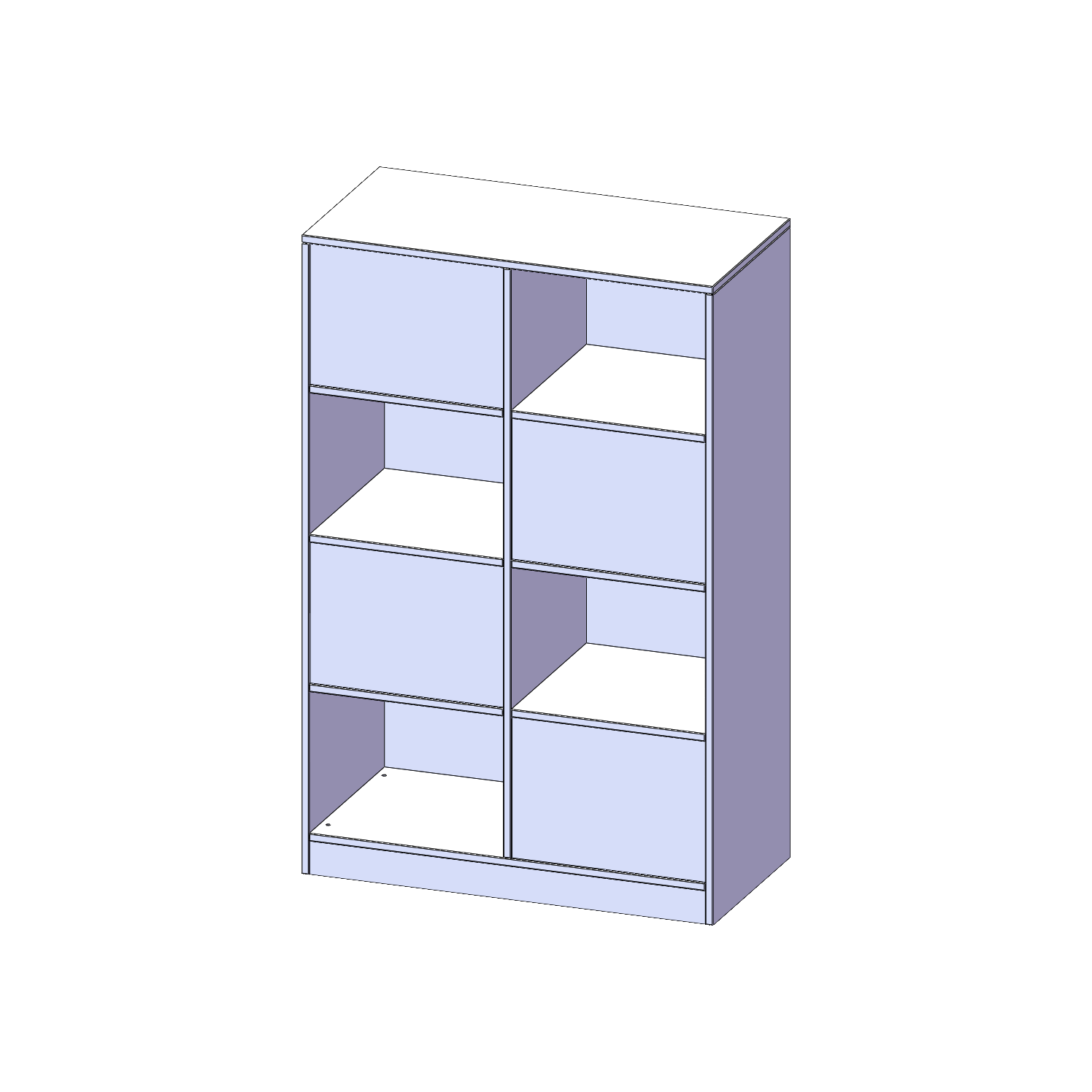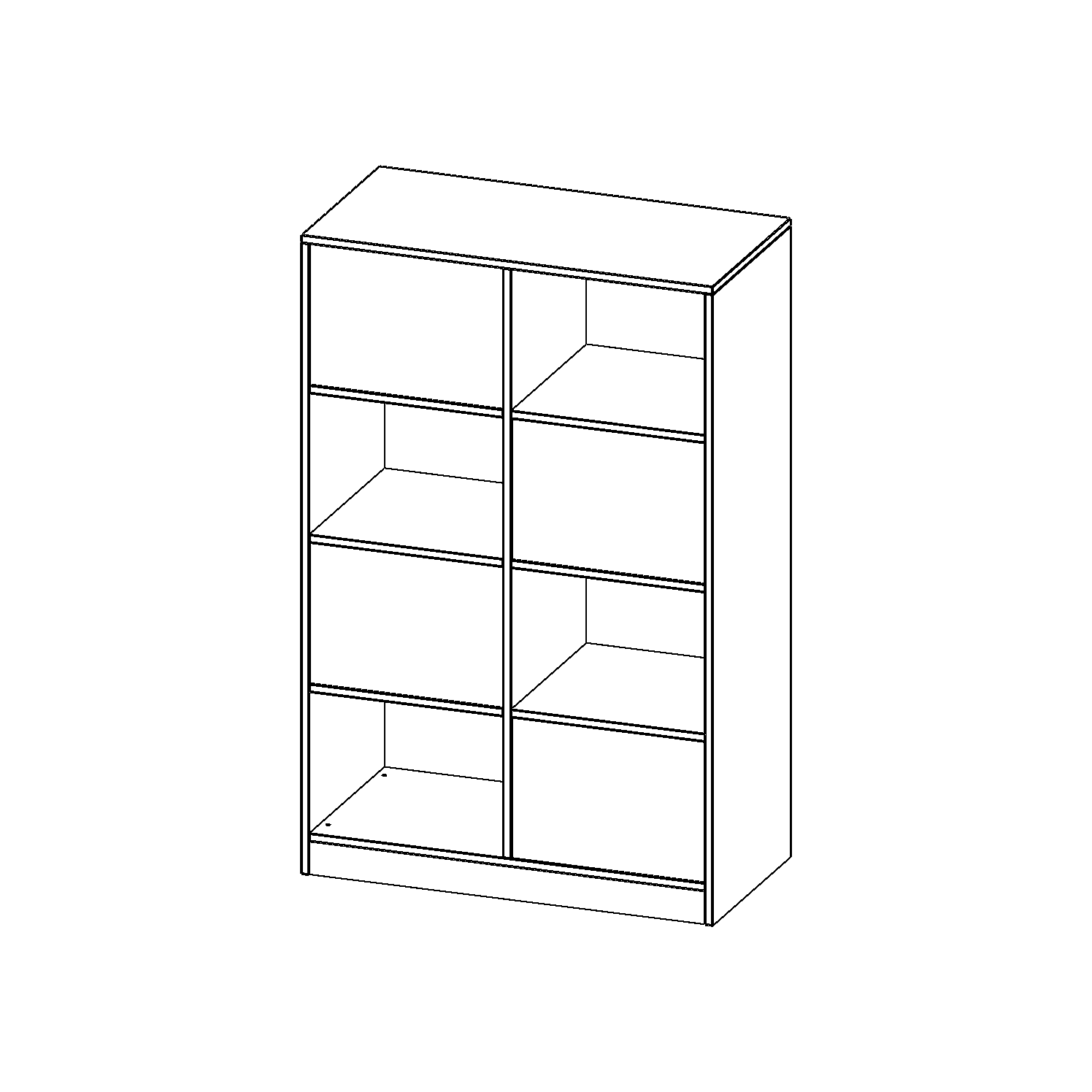 B/H/T: 100x154x50 cm, 8 Fächer, wechselseitig angeordnet, mit Sockel (81 mm)