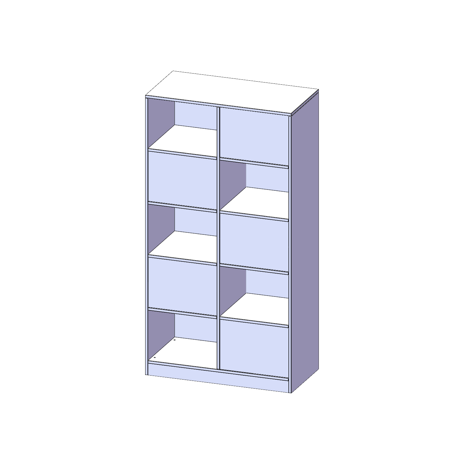 B/H/T: 100x190x50 cm, 10 Fächer, wechselseitig angeordnet, mit Sockel (81 mm)