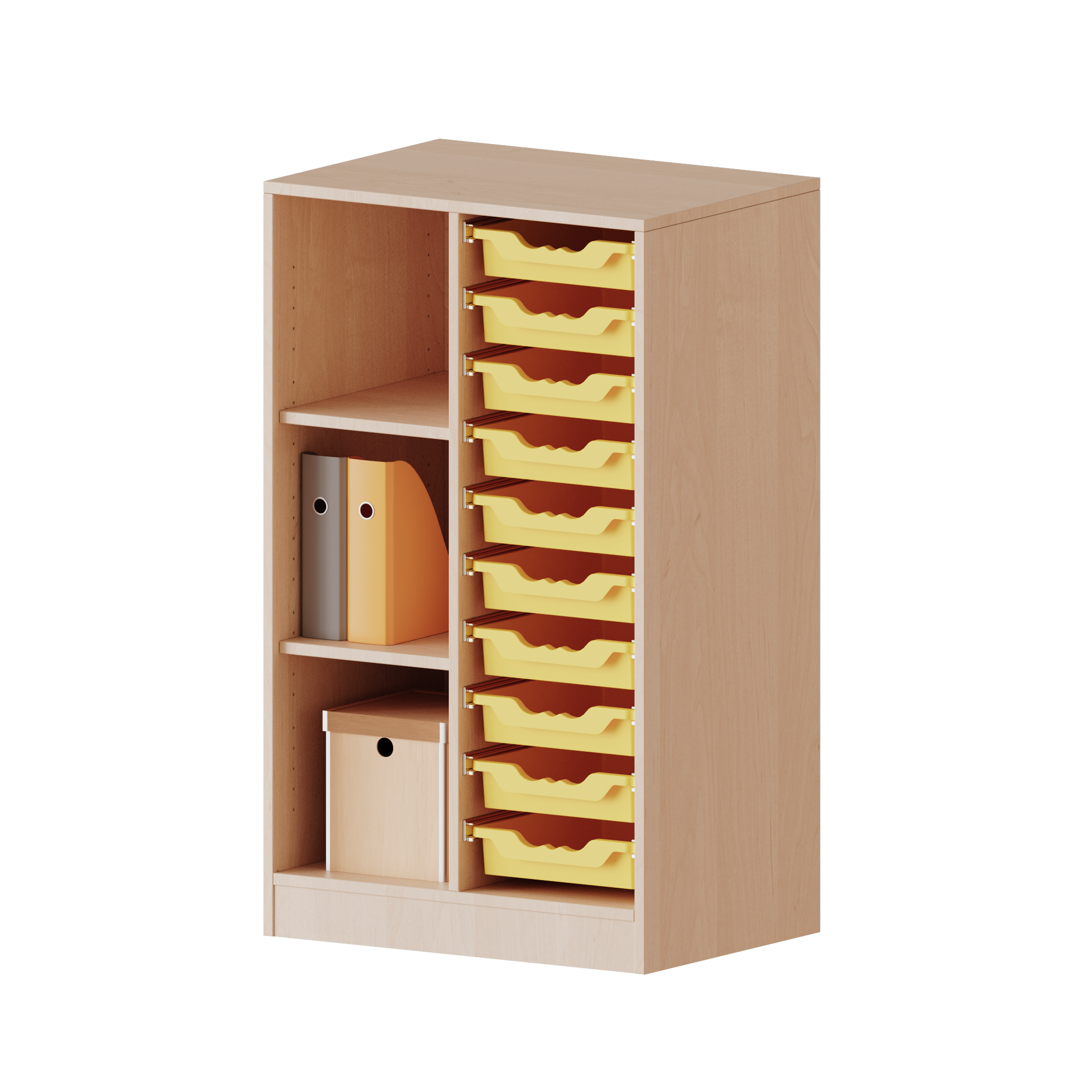 B/H/T: 70,3x118x50 cm, fahrbar, links 3 Fächer, rechts 10 flache ErgoTray Boxen