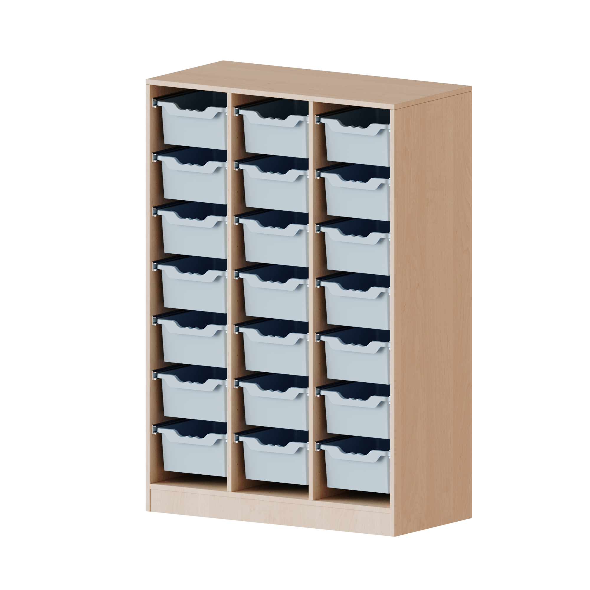 B/H/T: 104,5x154x40 cm, mit Sockel (81 mm), 21 hohe ErgoTray Boxen