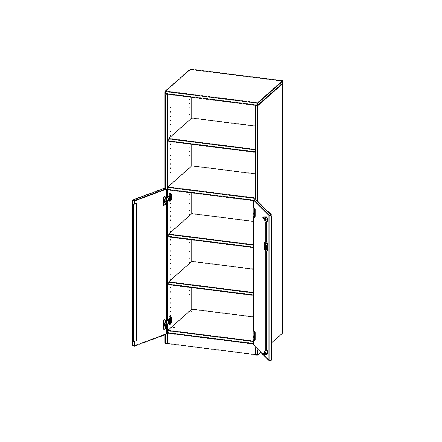 Alle Schränke werden aus melaminharzbeschichteter E1-Feinspanplatte gefertigt, die FSC zertifiziert und formaldehydfrei sind. Als Kanten verwenden wir besonders robuste 2 mm starke ABS Kanten, die unter hoher Temperatur fest verleimt werden. Bitte wählen Sie Ihr Wunschdekor aus unserer Dekorpalette aus. Die Einlegeböden sind im Raster von 32 mm verstellbar. Unsere hochwertigen Bodenträger verfügen über einen "Ausziehstop", so wird verhindert, dass Böden mit Inhalt darauf aus dem Regal oder Schrank rutschen können. Die Türen lassen sich dank 270° öffnender Scharniere an den Korpus anlegen. Sie sind mit einem Schloss verschließbar. An den Türen befindet sich eine Staublippe.