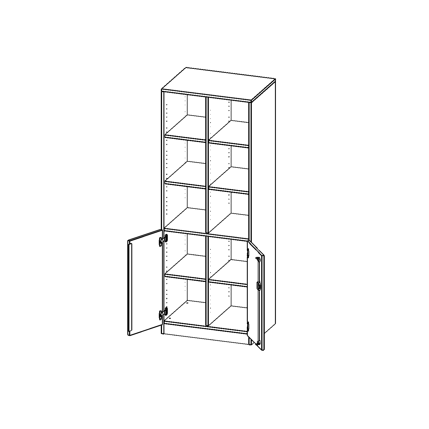 • unten 2 OH mit Türen, oben 3 OH offene Fächer