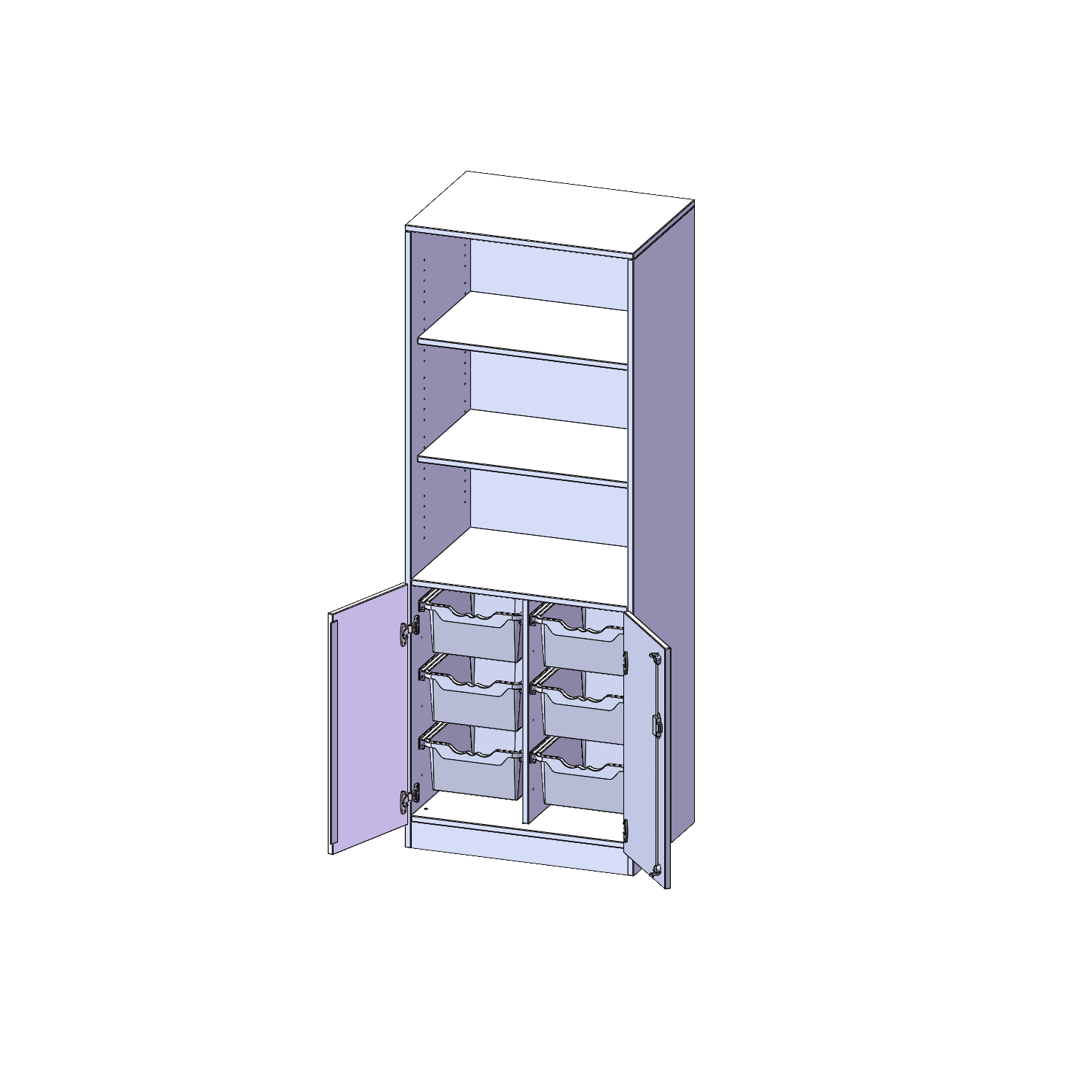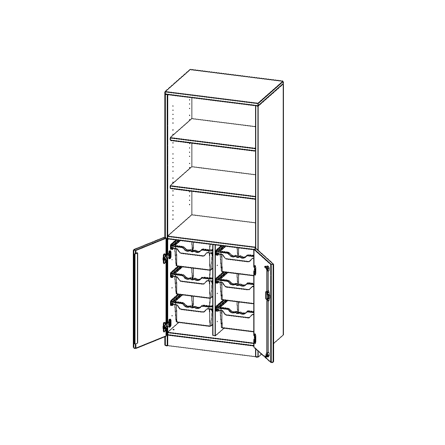 Alle Schränke werden aus melaminharzbeschichteter E1-Feinspanplatte gefertigt, die FSC zertifiziert und formaldehydfrei sind. Als Kanten verwenden wir besonders robuste 2 mm starke ABS Kanten, die unter hoher Temperatur fest verleimt werden. Bitte wählen Sie Ihr Wunschdekor aus unserer Dekorpalette aus. Die Einlegeböden sind im Raster von 32 mm verstellbar. Unsere hochwertigen Bodenträger verfügen über einen "Ausziehstop", so wird verhindert, dass Böden mit Inhalt darauf aus dem Regal oder Schrank rutschen können. Die Türen lassen sich dank 270° öffnender Scharniere an den Korpus anlegen. Sie sind mit einem Schloss verschließbar. An den Türen befindet sich eine Staublippe.