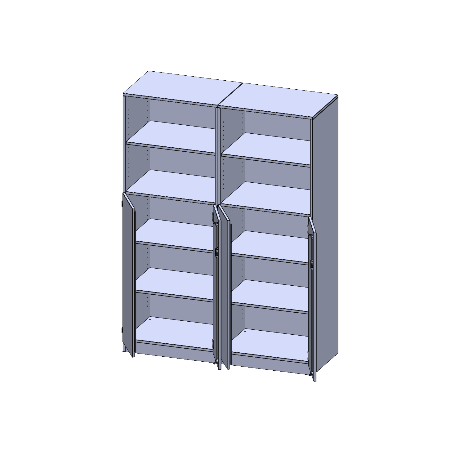 Alle Schränke werden aus melaminharzbeschichteter E1-Feinspanplatte gefertigt, die FSC zertifiziert und formaldehydfrei sind. Als Kanten verwenden wir besonders robuste 2 mm starke ABS Kanten, die unter hoher Temperatur fest verleimt werden. Bitte wählen Sie Ihr Wunschdekor aus unserer Dekorpalette aus. Die Einlegeböden sind im Raster von 32 mm verstellbar. Unsere hochwertigen Bodenträger verfügen über einen "Ausziehstop", so wird verhindert, dass Böden mit Inhalt darauf aus dem Regal oder Schrank rutschen können. Die Türen lassen sich dank 270° öffnender Scharniere an den Korpus anlegen. Sie sind mit einem Schloss verschließbar. An den Türen befindet sich eine Staublippe.