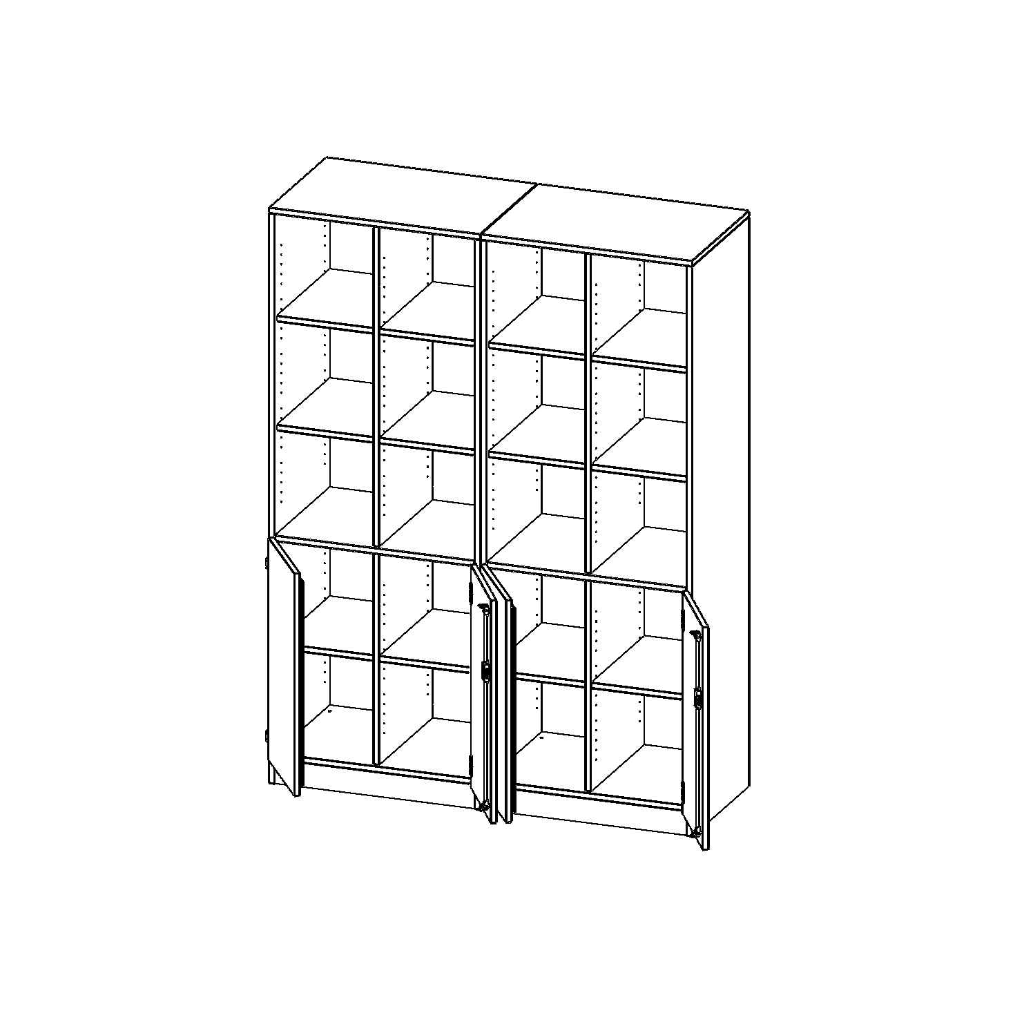 • unten 2 OH mit Türen, oben 3 OH offene Fächer