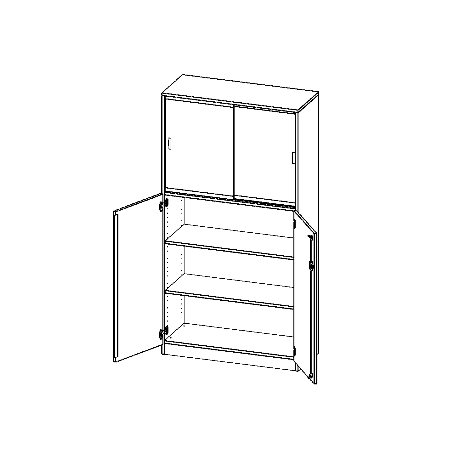 Produkt Bild Kombischrank, 5 Ordnerhöhen, Drehtüren unten (3 OH), Glasschiebetüren oben (2 OH) - Serie evo180 Produkt Bild Kombischrank, 5 Ordnerhöhen, Drehtüren unten (3 OH), Glasschiebetüren oben (2 OH) - Serie evo180