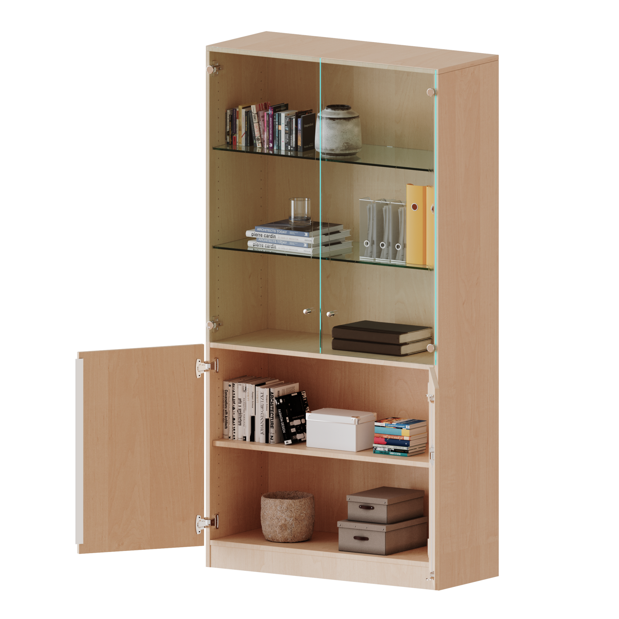 Schrank, 5 Ordnerhöhen, unten Türen (2 OH), oben Vitrinentüren (3 OH) - Serie evo180