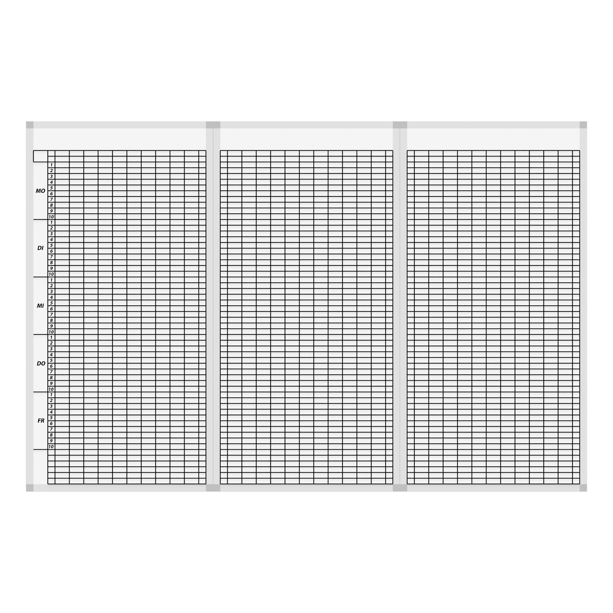 Stundenplantafel 3-teilig für 30 Klassen mit 12 Tagesstunden, 142x123 cm