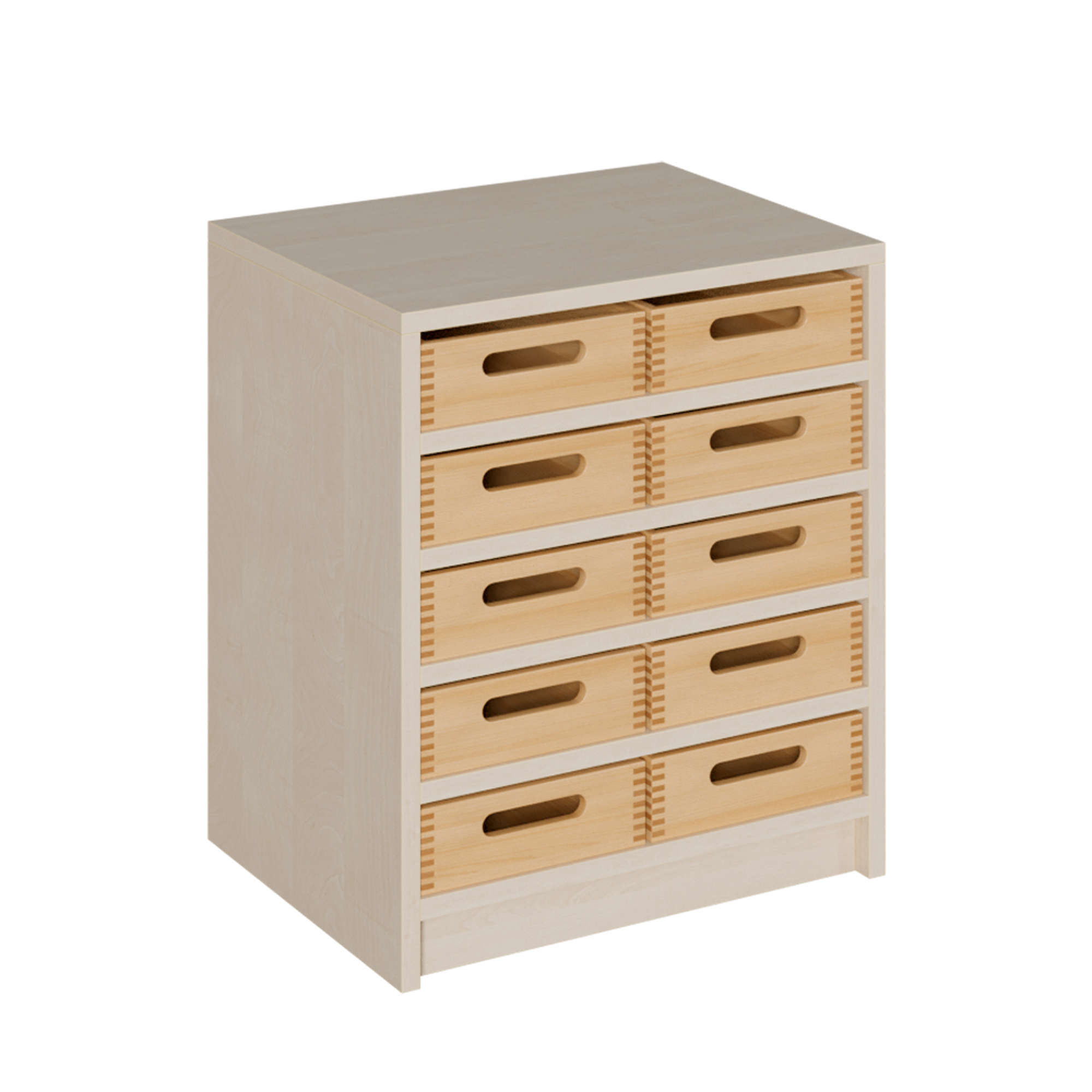 Korpusmaße B/H/T: 52x60x40 cm, mit 10 Massivholzkästen (190 031 00 / HK 10) mit den Innenmaßen 23,5x7,7x36 cm.