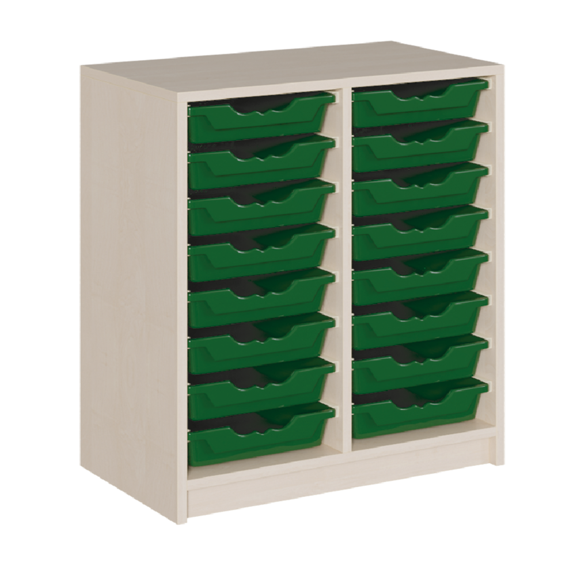 Breite 70.5 cm, in 2reihiger Anordnung mit 16 flachen ErgoTray-Boxen, Gesamthöhe 80 cm