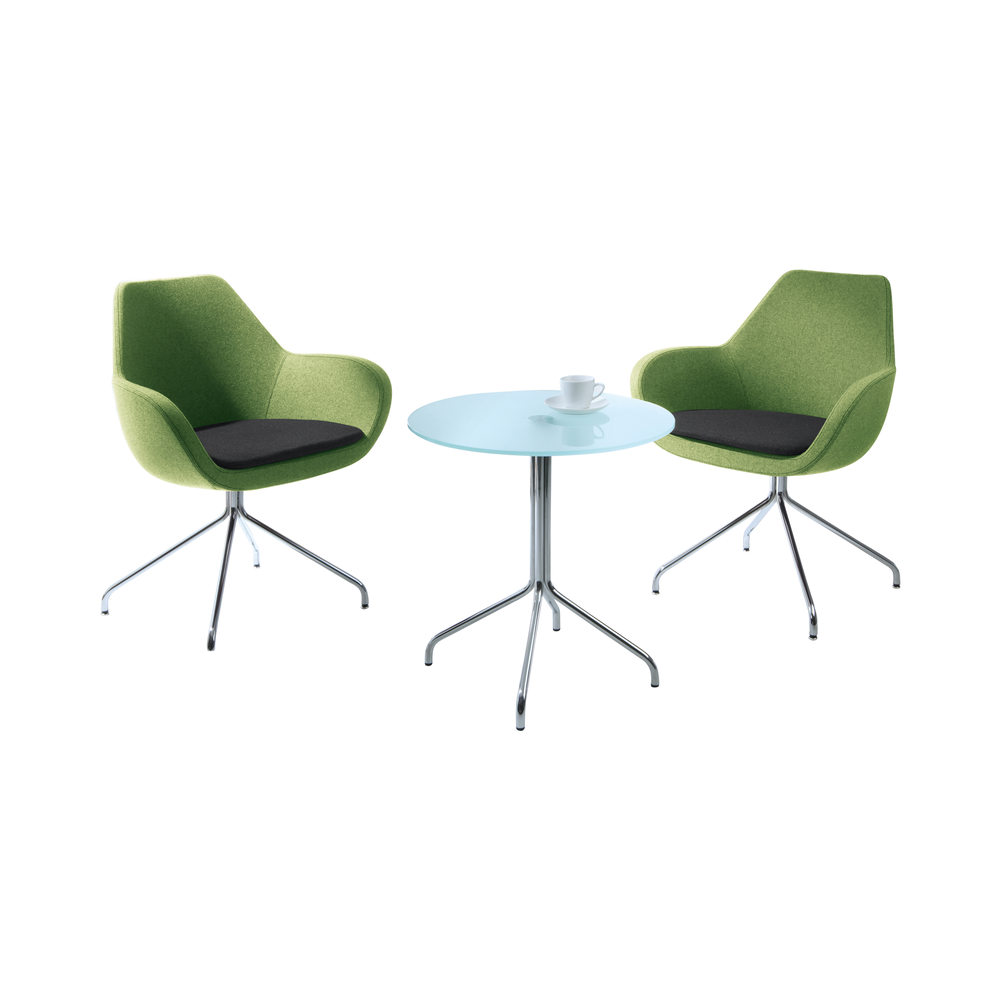 Das Spinnengestell bietet eine hohe Stabilität, während die Milchglasplatte eine dezente Eleganz ausstrahlt.