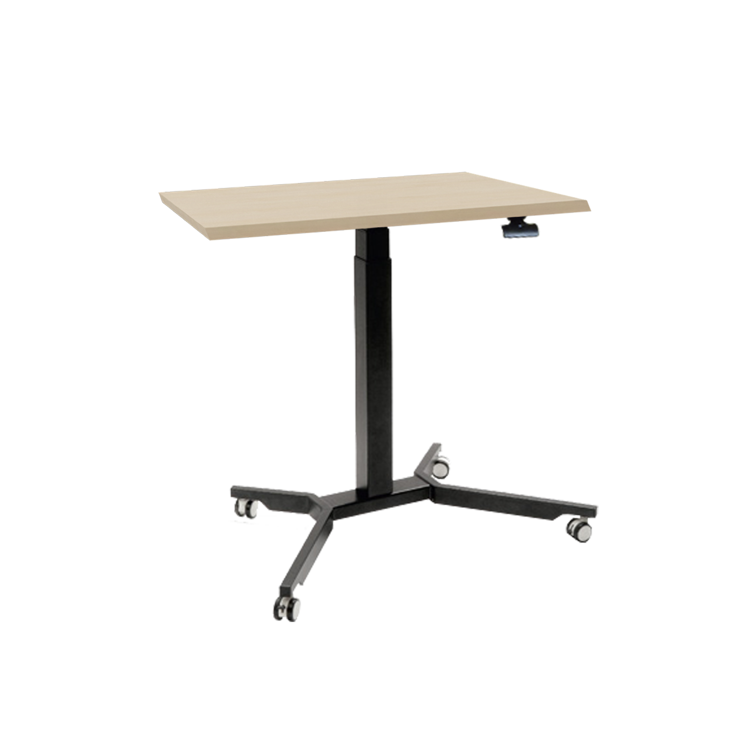 Die Höhenverstellung funktioniert mittels Gasdrucksystem. Der Auslösung mit ergonomischem Griff ist im Randbereich unter der Tischplatte montiert und ohne bücken oder knien erreichbar.
