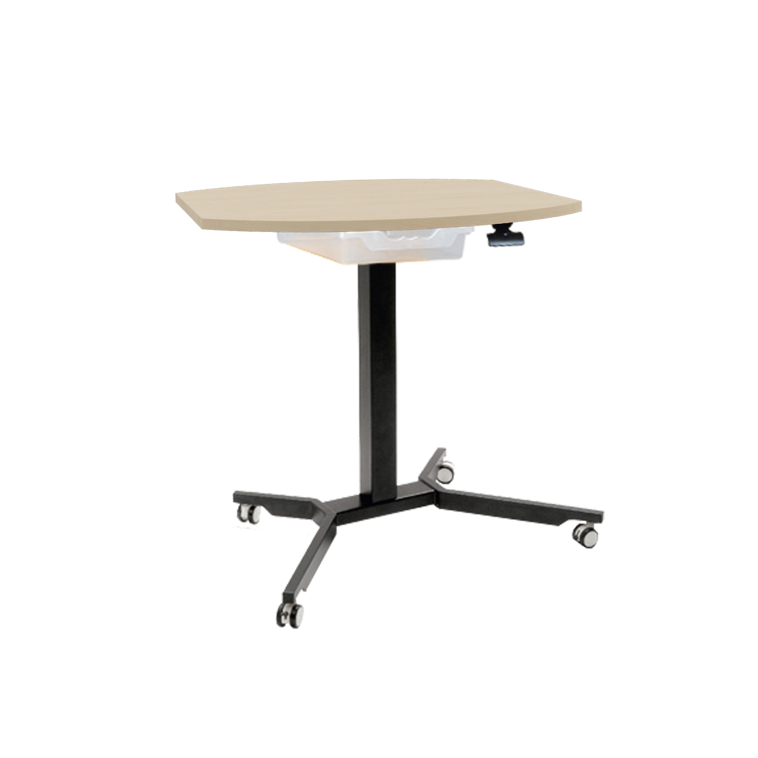 Die Höhenverstellung funktioniert mittels Gasdrucksystem. Der Auslösung mit ergonomischem Griff ist im Randbereich unter der Tischplatte montiert und ohne bücken oder knien erreichbar.