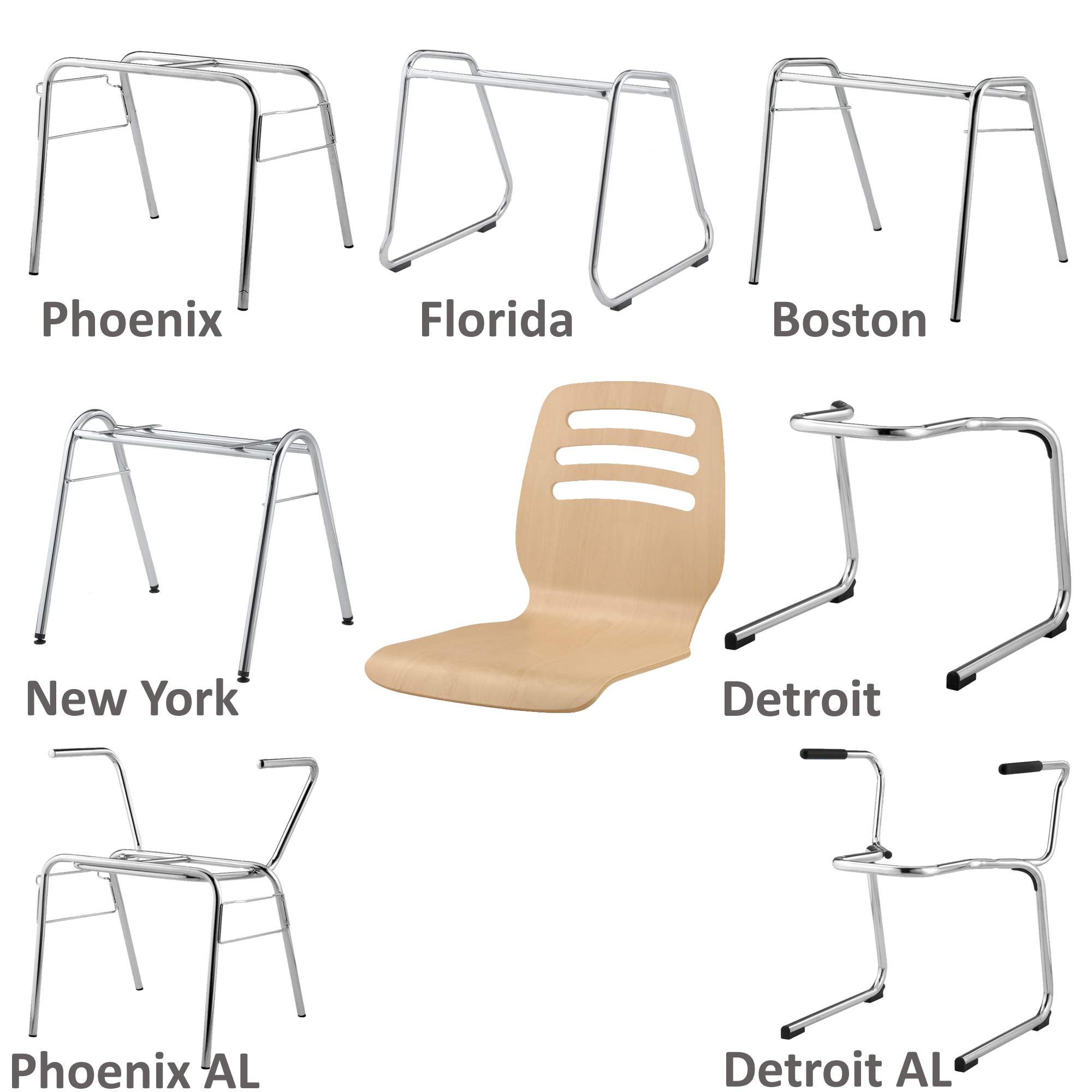Sitzhöhe: 46 cm, Sitzschale Buche natur, Gestellform nach Wahl, verchromtProduktbeschreibung