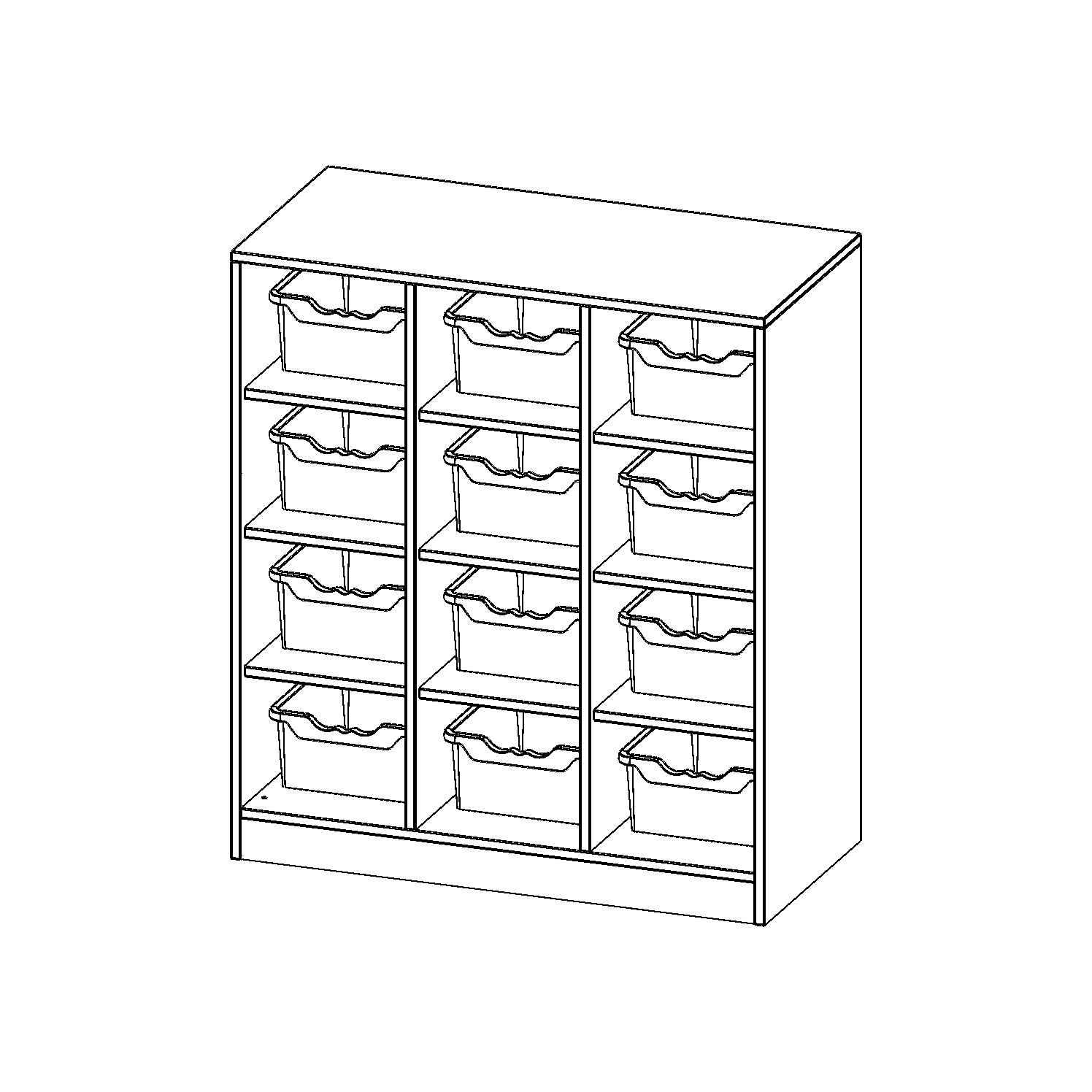 B/H/T: 104,5x118x50 cm, 12 halbhohe Fächer, je mit einer hohen ErgoTray Box, mit Sockel (81 mm)