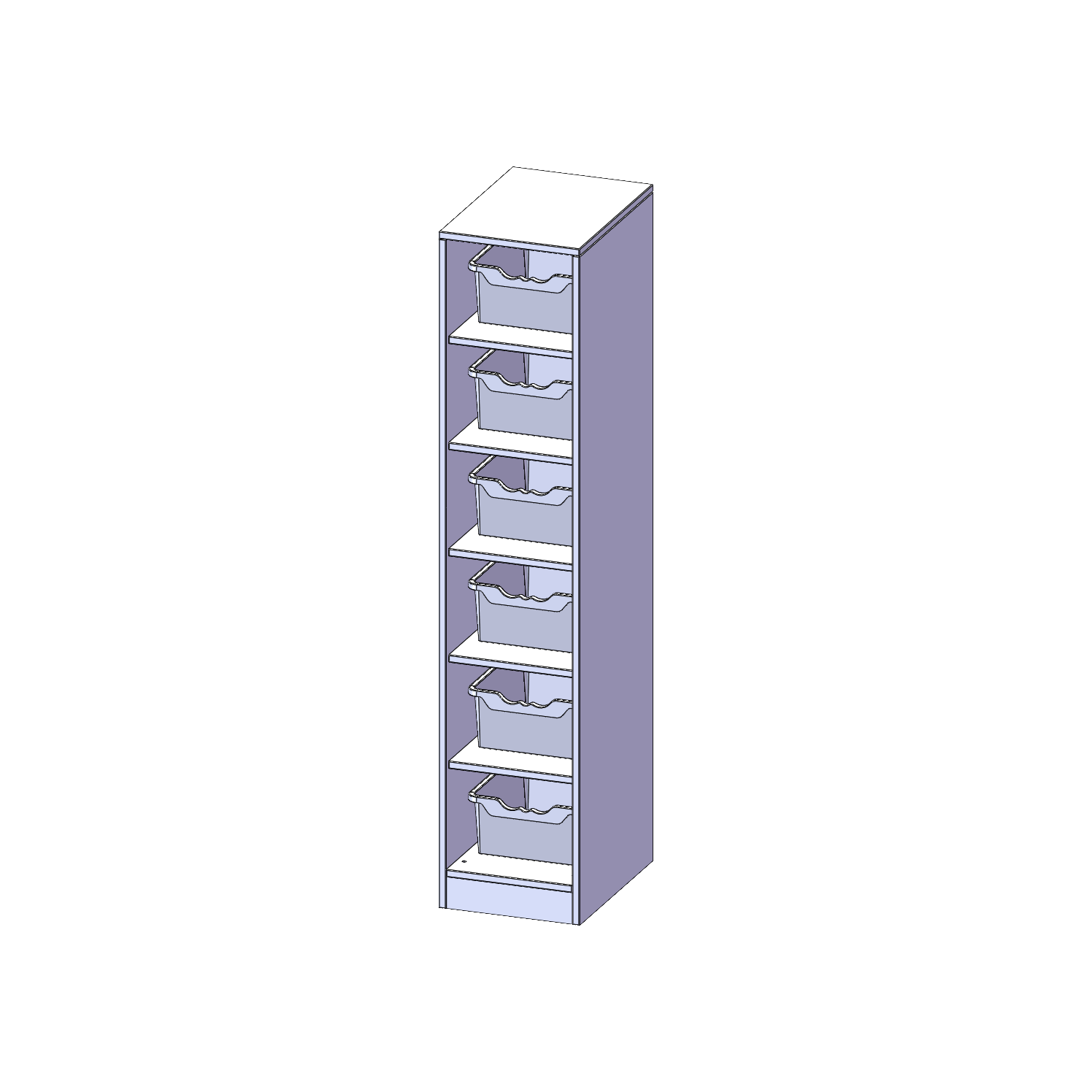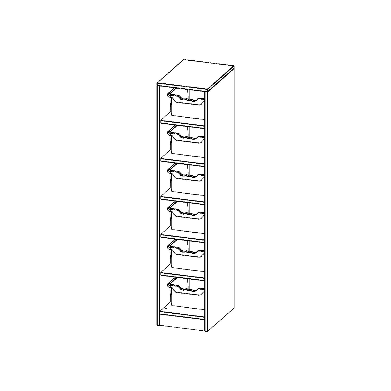 B/H/T: 36,1x172x50 cm, 6 halbhohe Fächer, je mit einer hohen ErgoTray Box, mit Sockel (81 mm)