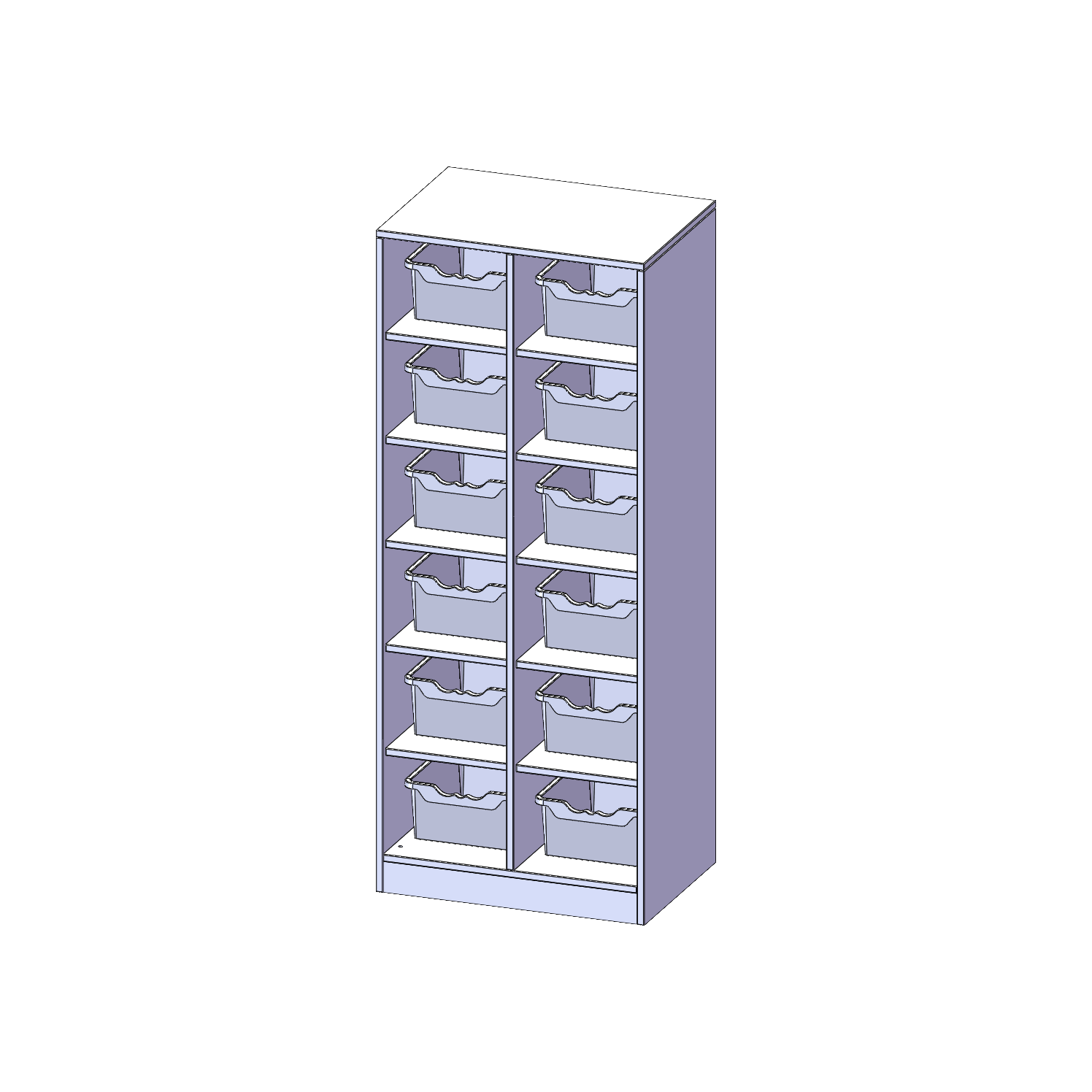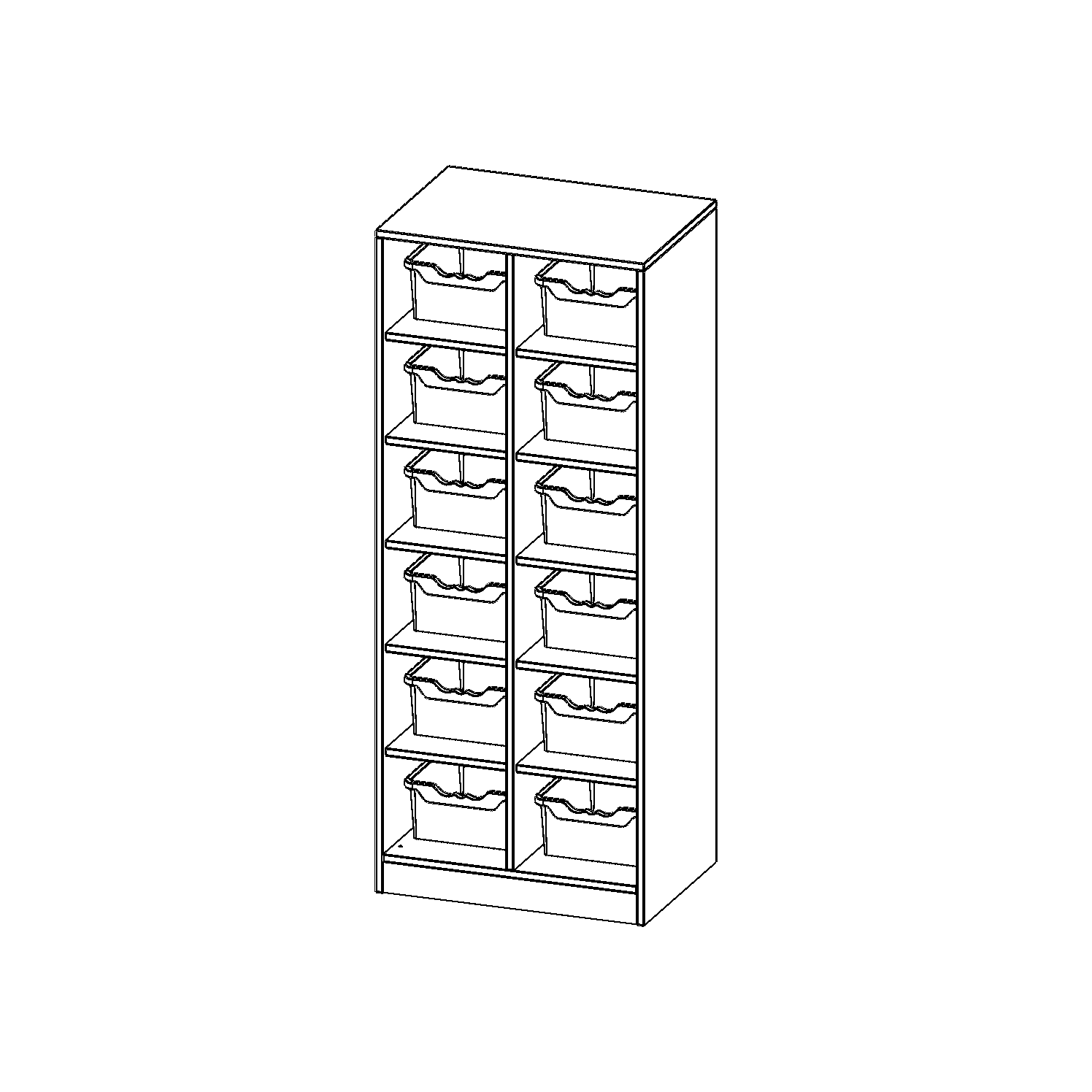B/H/T: 70,3x172x50 cm, 12 halbhohe Fächer, je mit einer hohen ErgoTray Box, mit Sockel (81 mm)