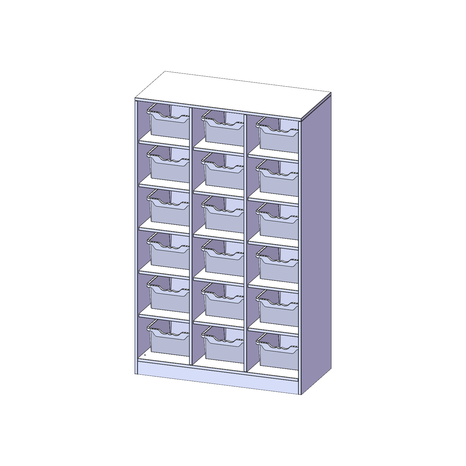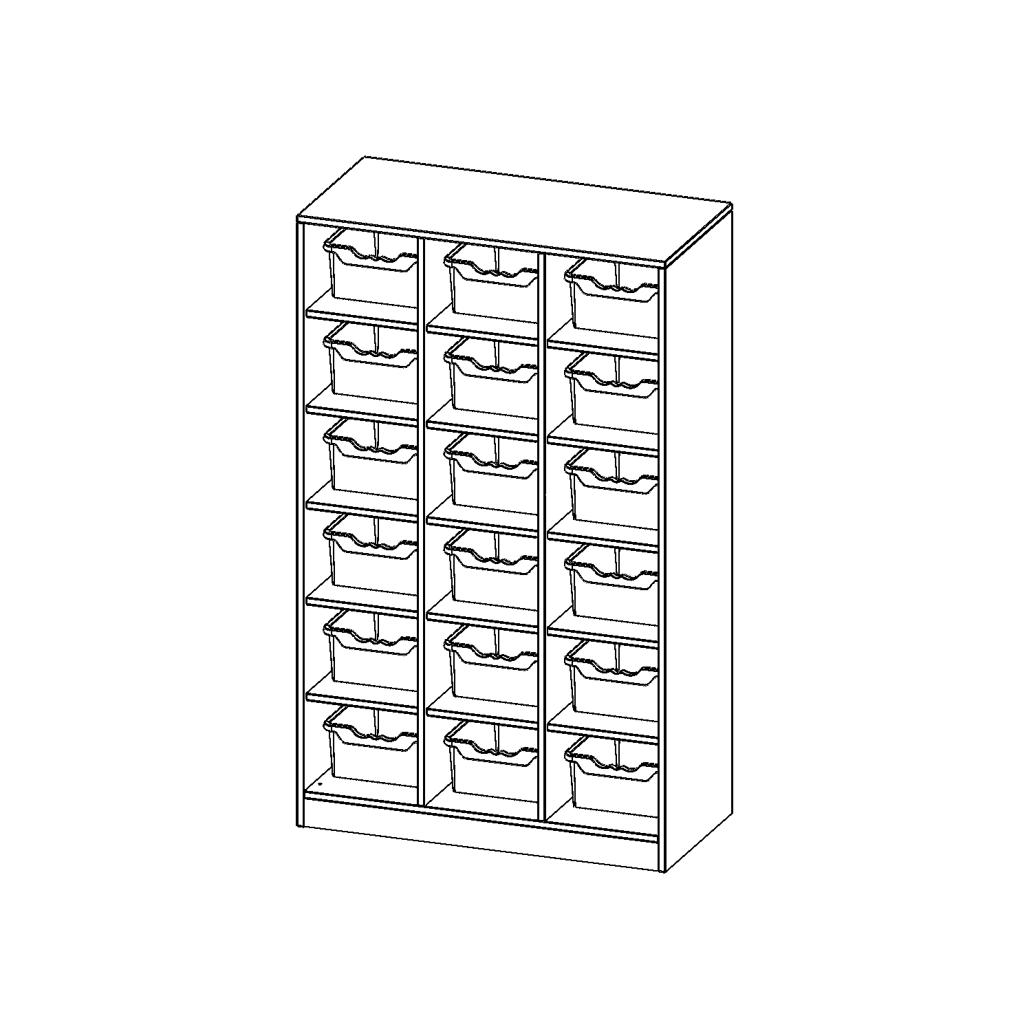 B/H/T: 104,5x172x50 cm, 18 halbhohe Fächer, je mit einer hohen ErgoTray Box, mit Sockel (81 mm)