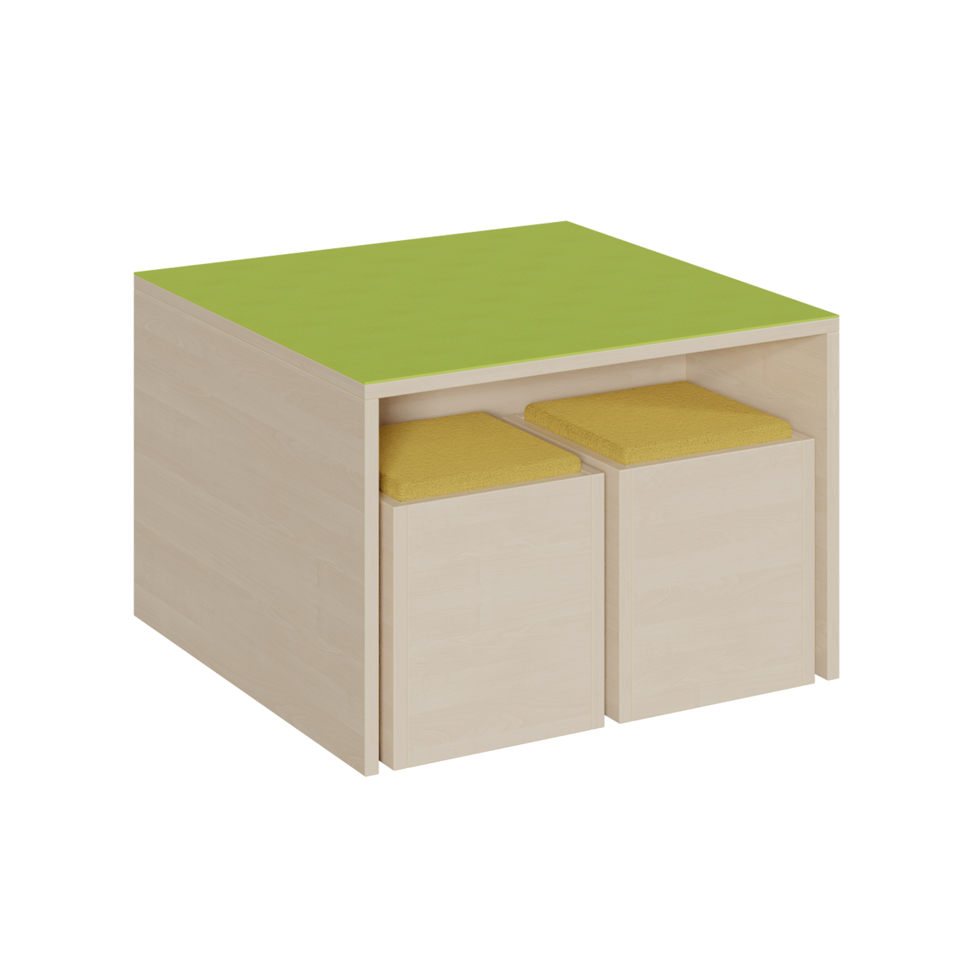 Die 4 Hocker können gleichzeitig als Bücher oder Bausteinkisten genutzt werden.