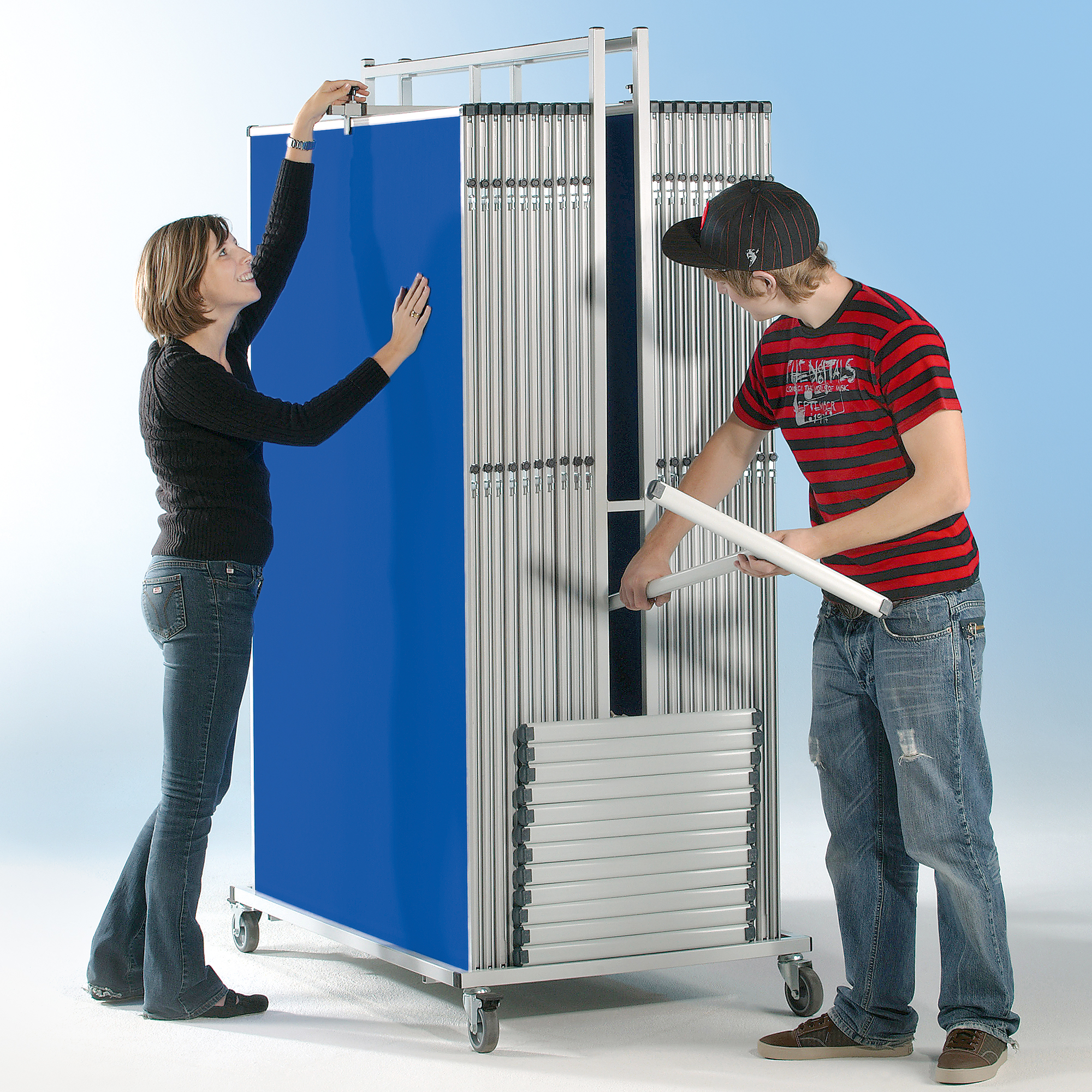 Unser Transportwagen NSTT-W190-20 kann 20 Stecktafeln der Serie NSTT gleichzeitig transportieren. Er besteht aus einem pulverbeschichteten Stahlrohrgestell einer Ablage für Stative und 2 Klemmvorrichtungen zur Fixierung der Tafeln. Dank seiner 4 Leichtlaufrollen ist er super einfach von "A" nach "B" zu transportieren.