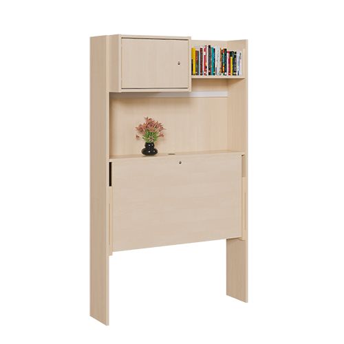 Wandklapparbeitsplatz mit ausklappbarer Tischplatte sowie abschließbarem Schrank und einem Regal, inkl. Magnetleiste sowie 1x Kabeldurchlass.