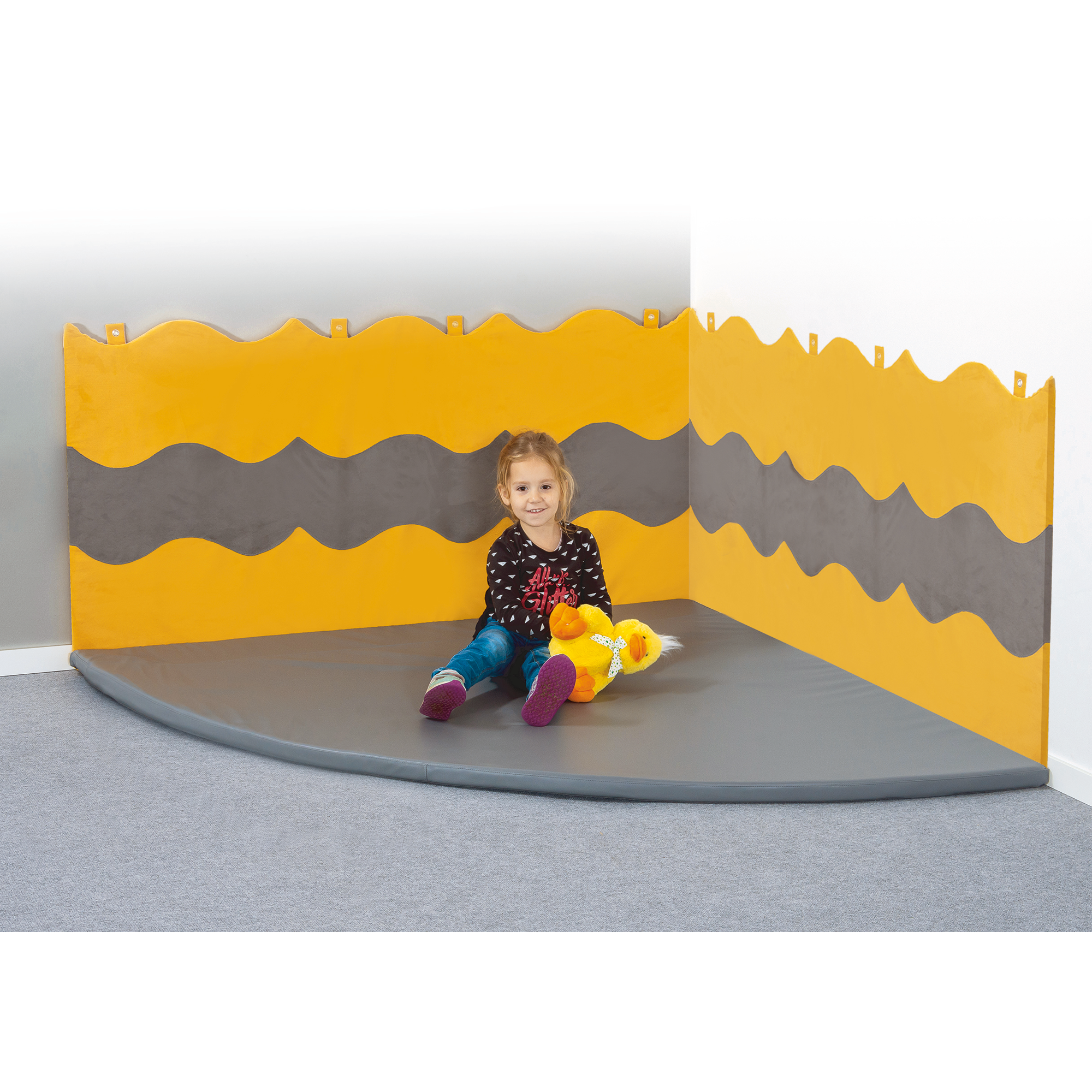 Eine Wandmatte in Wellenoptik - eine schöne Gestaltungsmöglichkeit in bunten Farben für die gemütliche und kuschelige Wandverkleidung oder Polsterecke. Durch die 3-teilige Wellenoptik ist die Gestaltung von abwechslungsreichen Farbkombinationen möglich. Natürlich wird durch die Wandmatte zusätzlich eine spürbare Schalldämmung im Raum erzielt!