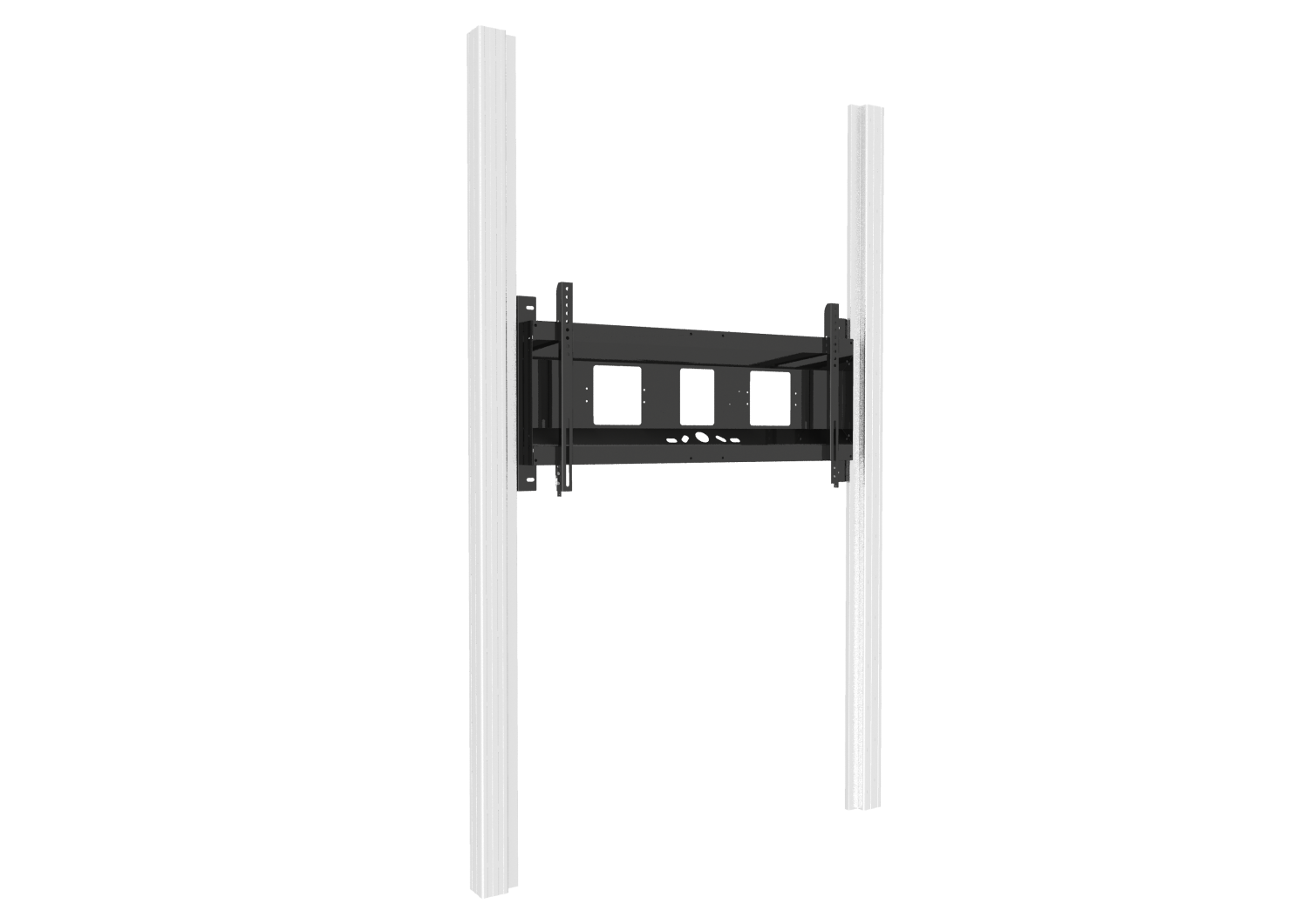 Diese elektrisch höhenverstellbare Halterung für Monitore ist mit allen am Markt erhältlichen Touchescreen Displays von 65" bis 86" Bildschirmdiagonale kompatibel. Die verstellbare Pylone besteht aus zwei an der Wand und am Boden montierten Aluminiumprofilen, in denen der Motor verdeckt eingebaut ist.