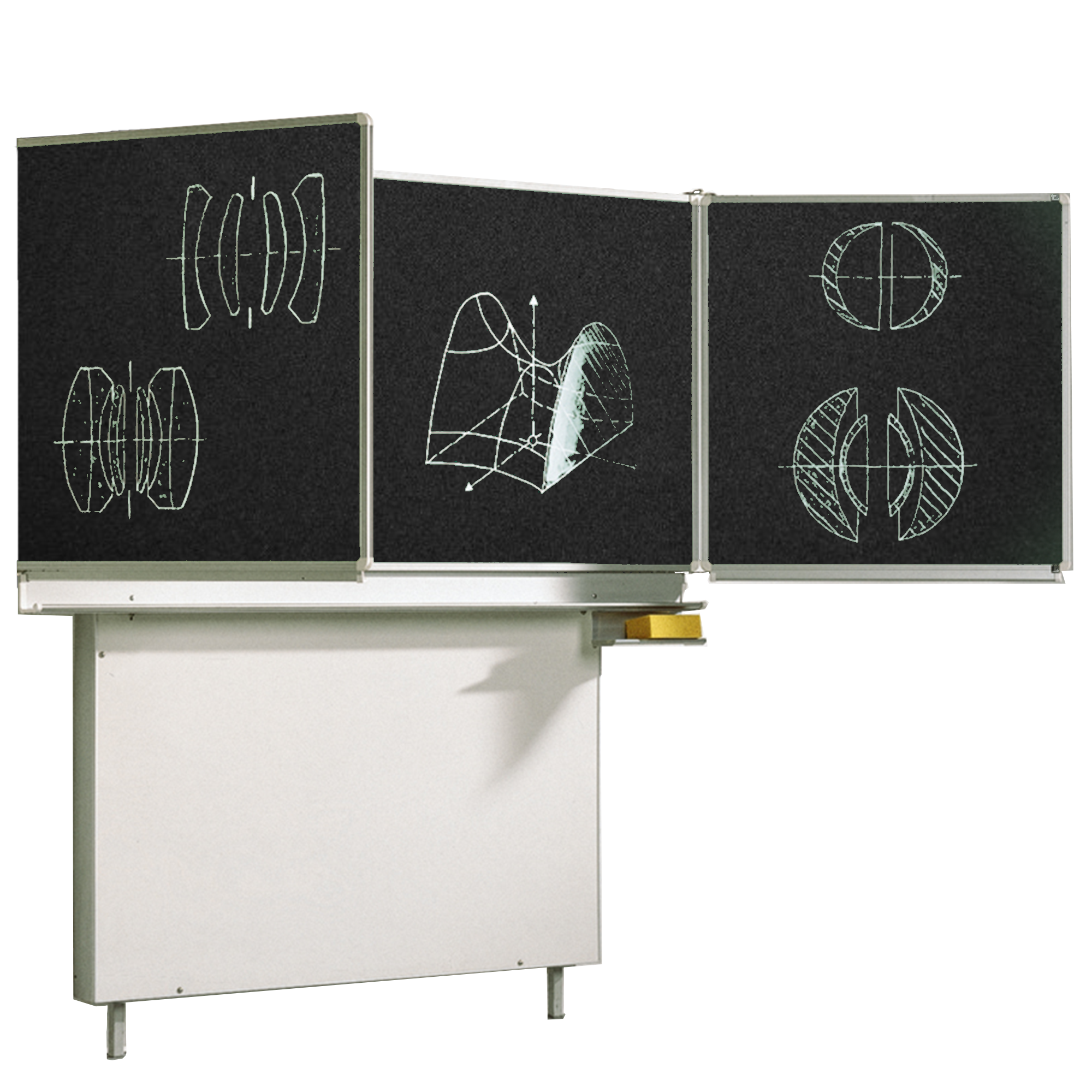 An der Mittelfläche ist zusätzlich eine Kreideablage aus natureloxiertem, gerundetem Alu-Winkelprofil (Schenkellänge 100mm) mit untergeschraubten Kreide- und Schwammbehälter, welcher ebenfalls aus ABS-Kunststoff ist.