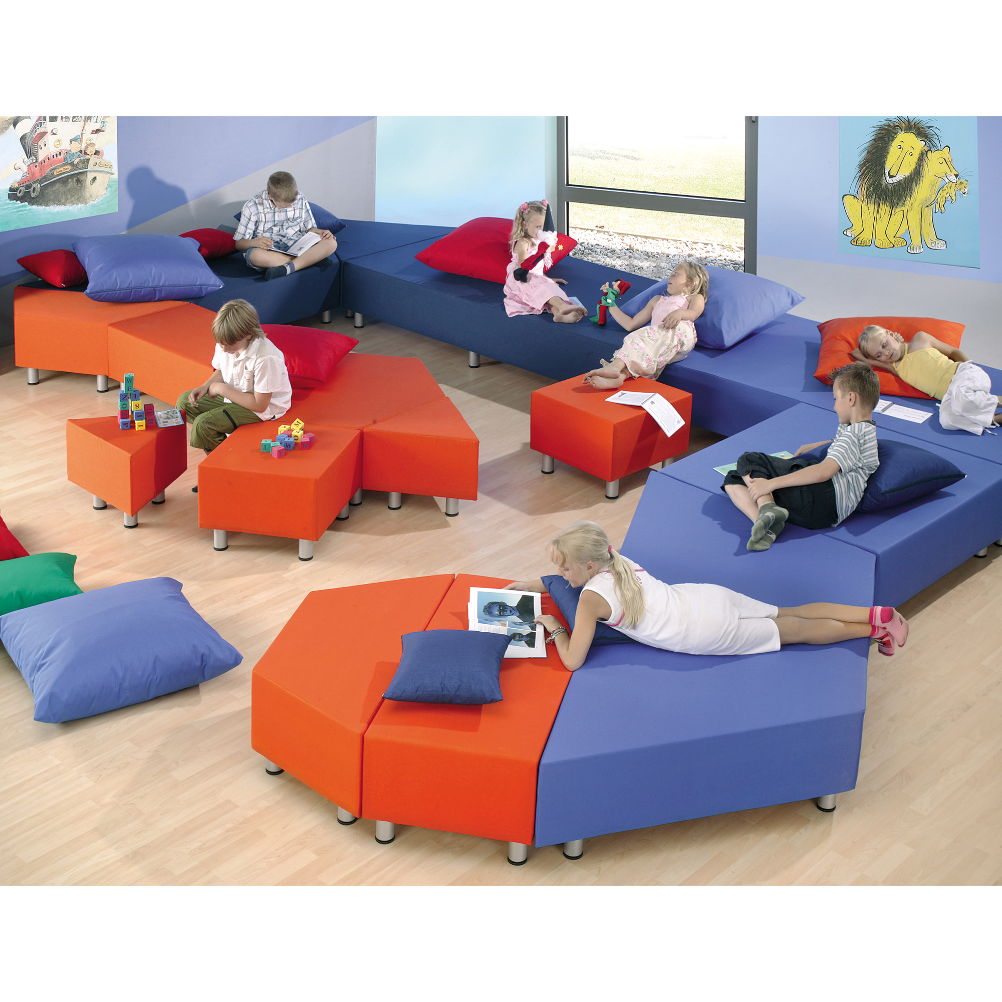 Die Füße haben Stellschrauben, der Kern ist aus hochwertigem Schaumstoff, der Bezug ist flammhememend und einfach zu reinigen.