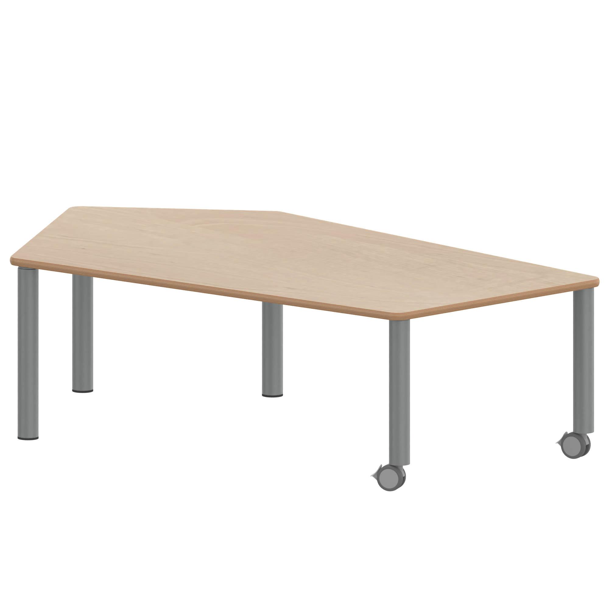 Fünfecktisch-groß, Stellfläche B/T: 185x104 cm, Höhen 25…76 cm, Massivholzbeine Ø 60 mm, Fußvariante: fahrbar
