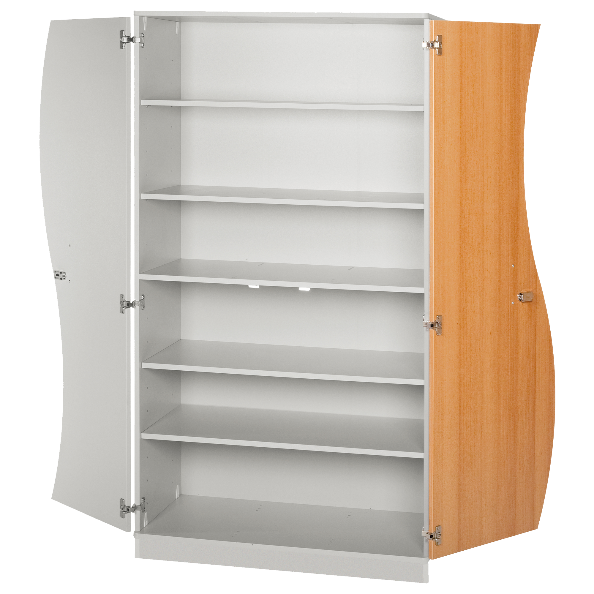 Der zweitürige Wellentürenschrank bietet Stauraum für die Höhe von 5 Ordnern. Durch 5 Einlegeboden lässt sich die Höhe der 6 Fächer im Raster von 32 mm beliebig variieren. Die Einlegeböden unserer Schränke sind mit einer Auszugsicherung versehen, die das ungewollte Herausziehen...