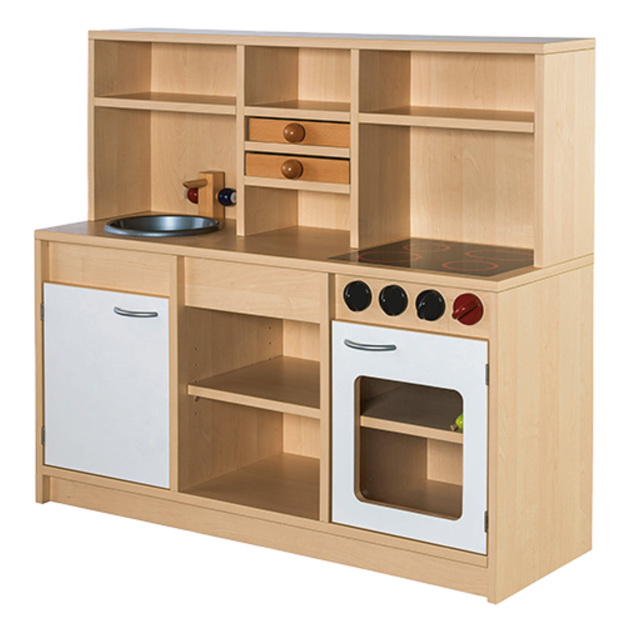 Mit diesem hochwertig verarbeiteten Puppenherd wird die Spielküche zum Mittelpunkt jeder Kinderspiel-Kochrunde. Der Korpus ist fest verleimt und in verschiedenen Dekoren erhältlich – perfekt kombinierbar mit anderen Spielmöbeln aus der Spielmöbelserie.