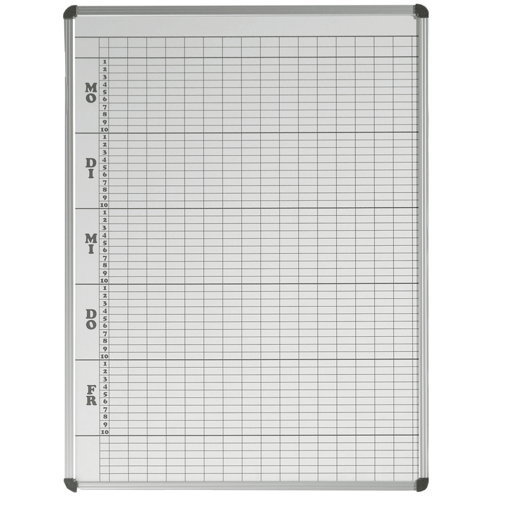 B/H: 137x103 cm, 10 Stunden, 30 Klassen, Stahlemaillie weiß, magnethaftend, mit Whiteboardmarkern beschreibbar