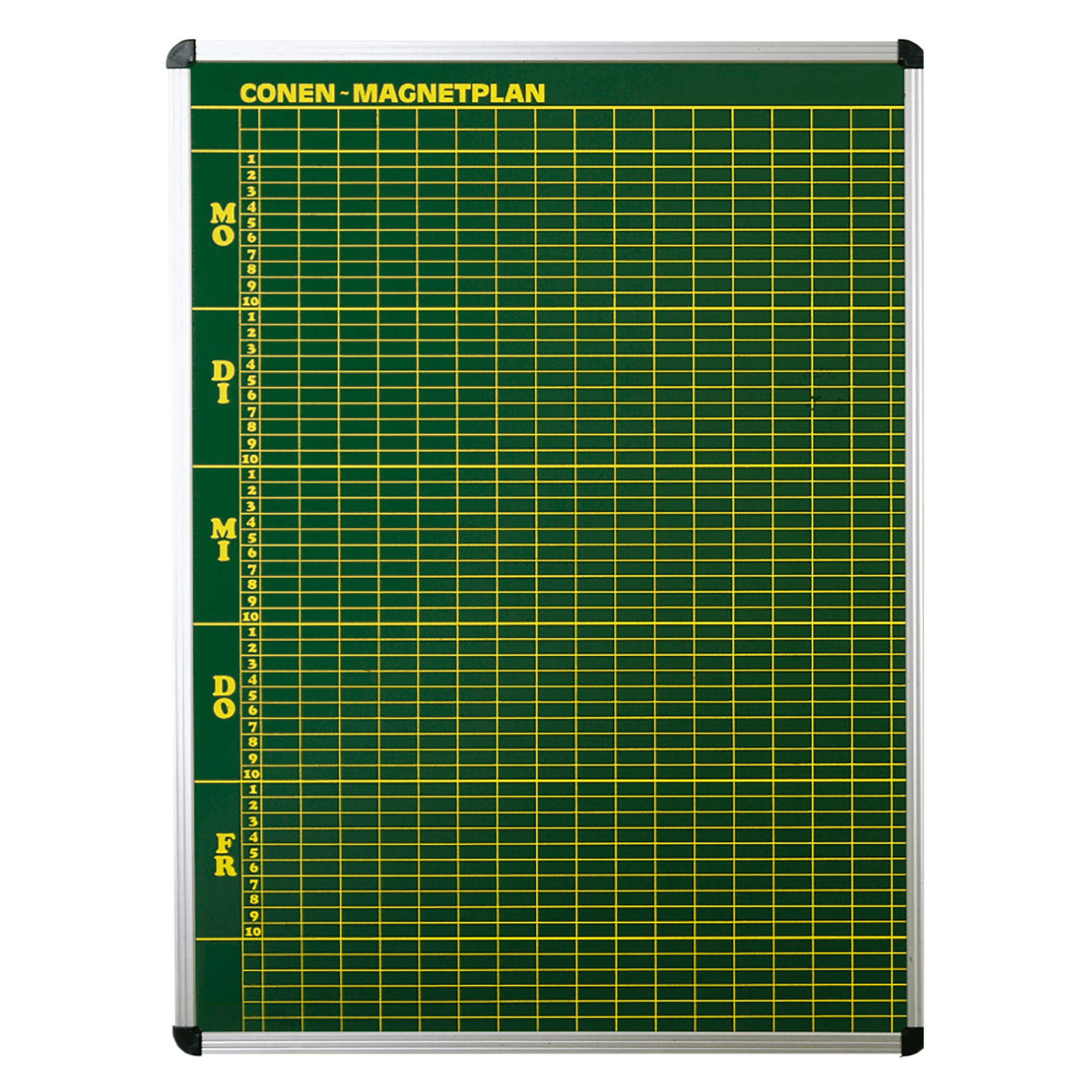B/H 57x103 cm, 10 Stunden, 10 Klassen, Stahlemaillie grün, magnethaftend, beschreibbar