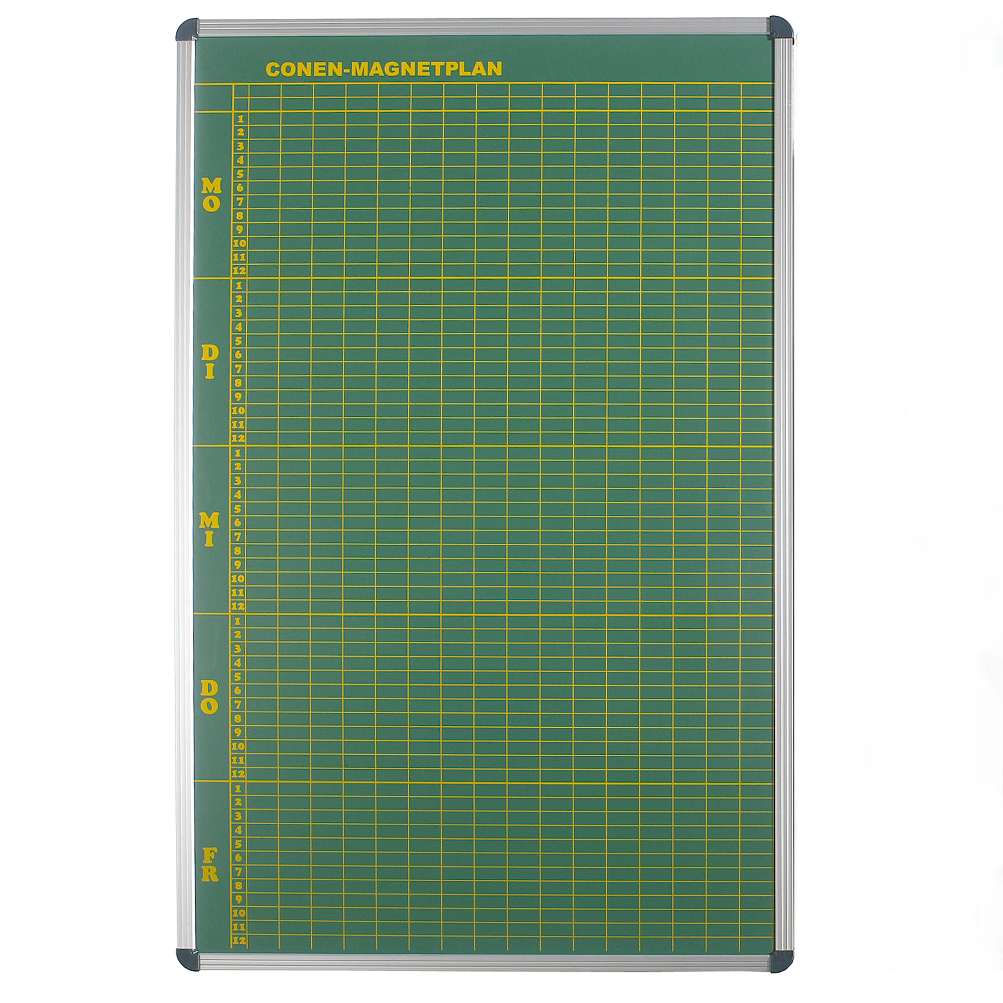B/H: 151x123 cm, 12 Stunden, 35 Klassen, Stahlemaillie grün, magnethaftend, beschreibbar