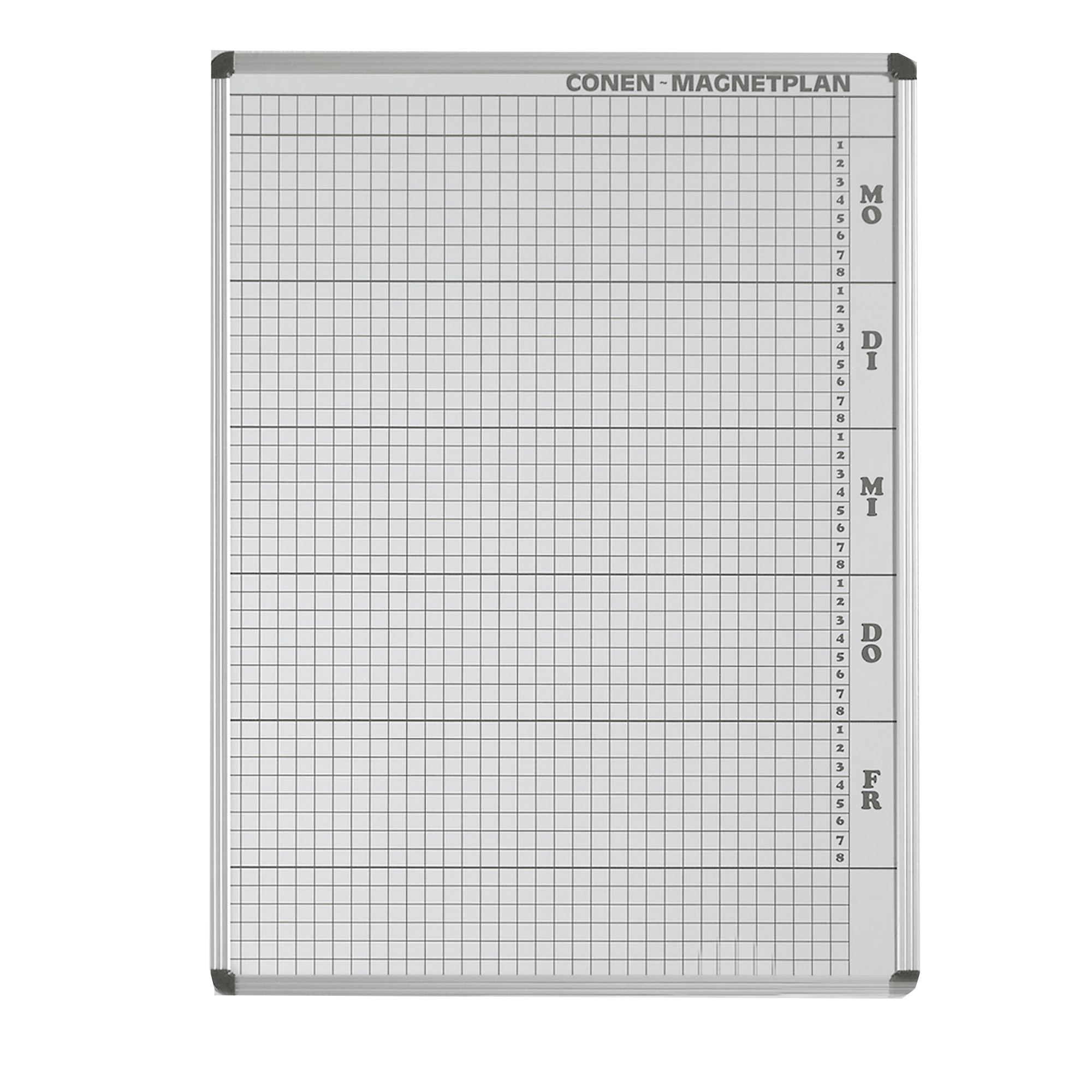 Plantafel mit Personalplan und Stundenraster aus beschreibbarer Premium Stahlemaille, weiß