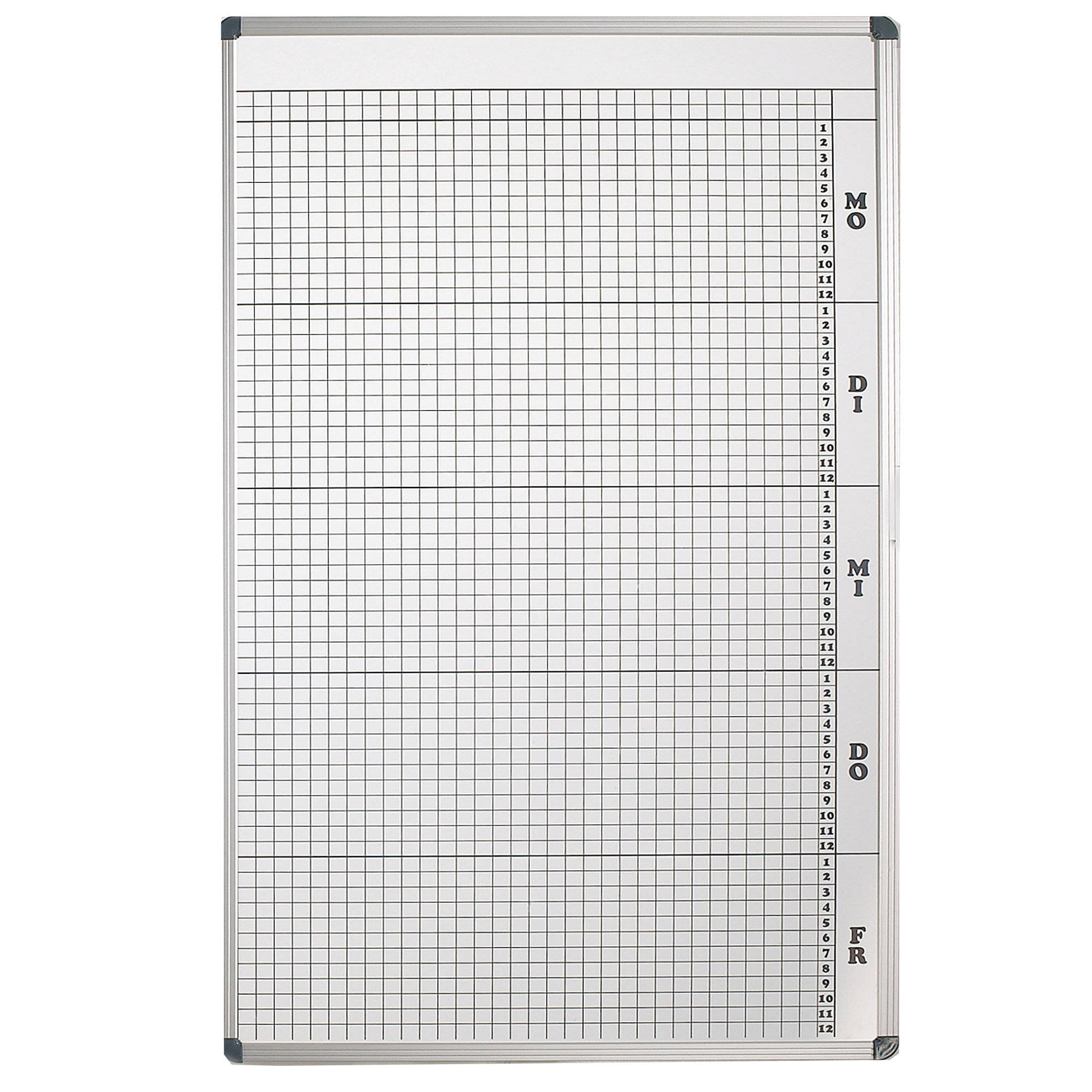 Plantafel mit Personalplan und Stundenraster aus beschreibbarer Premium Stahlemaille, weiß