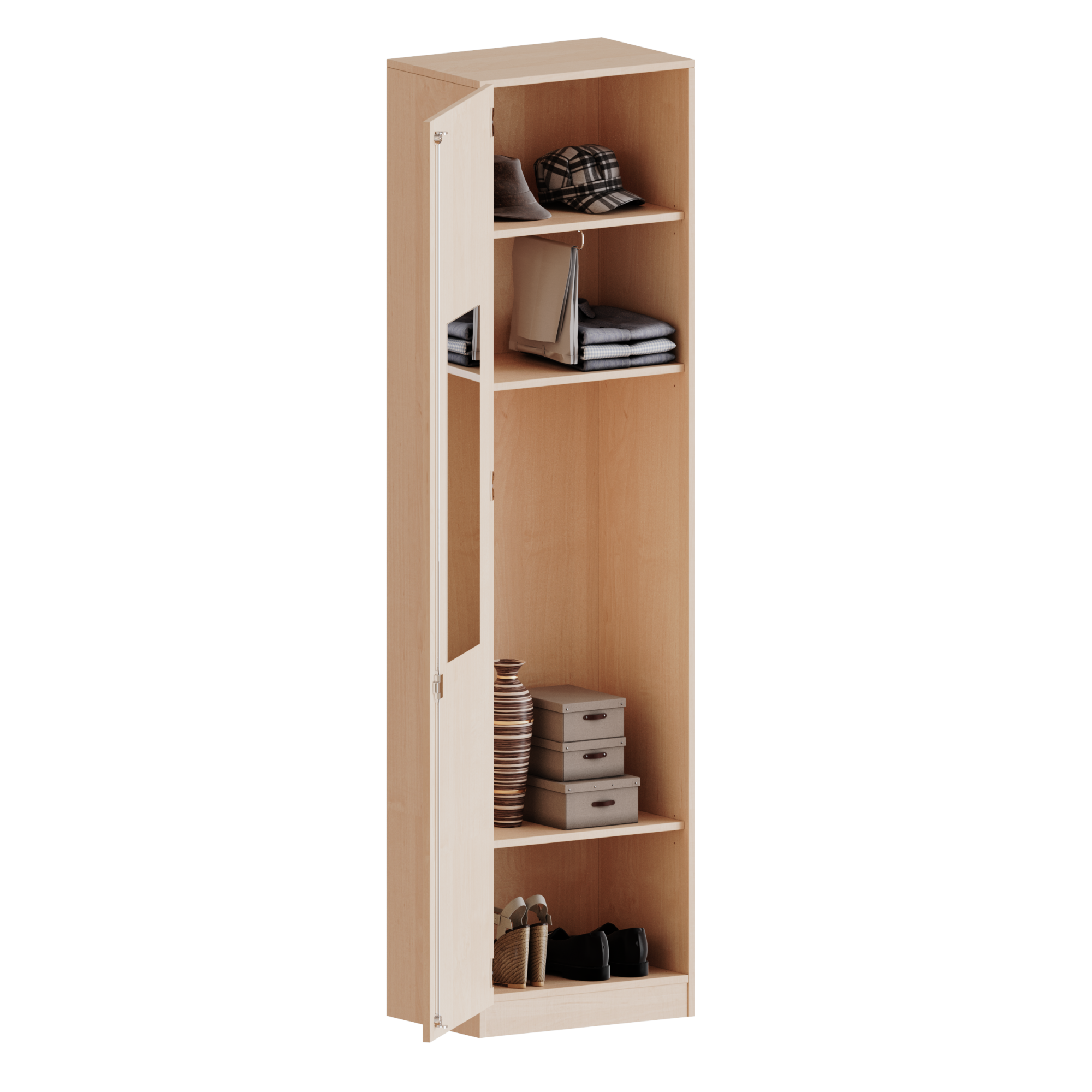 Garderobenschrank mit Spiegel und Garderobenstange, 6 Ordnerhöhen - Serie evo180