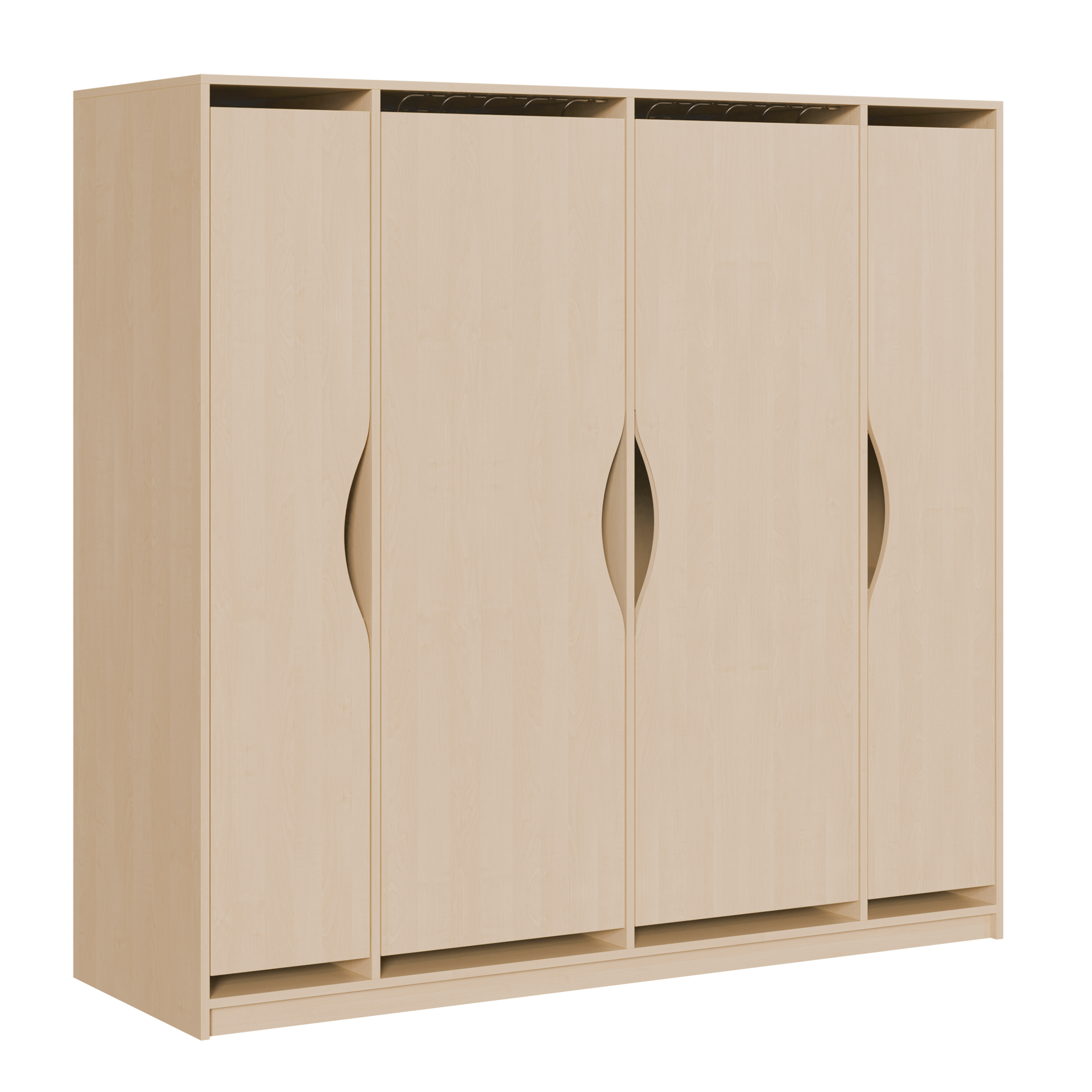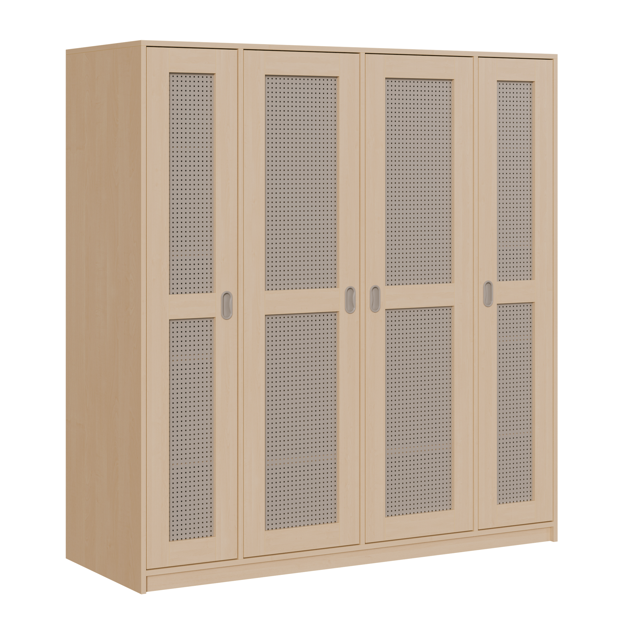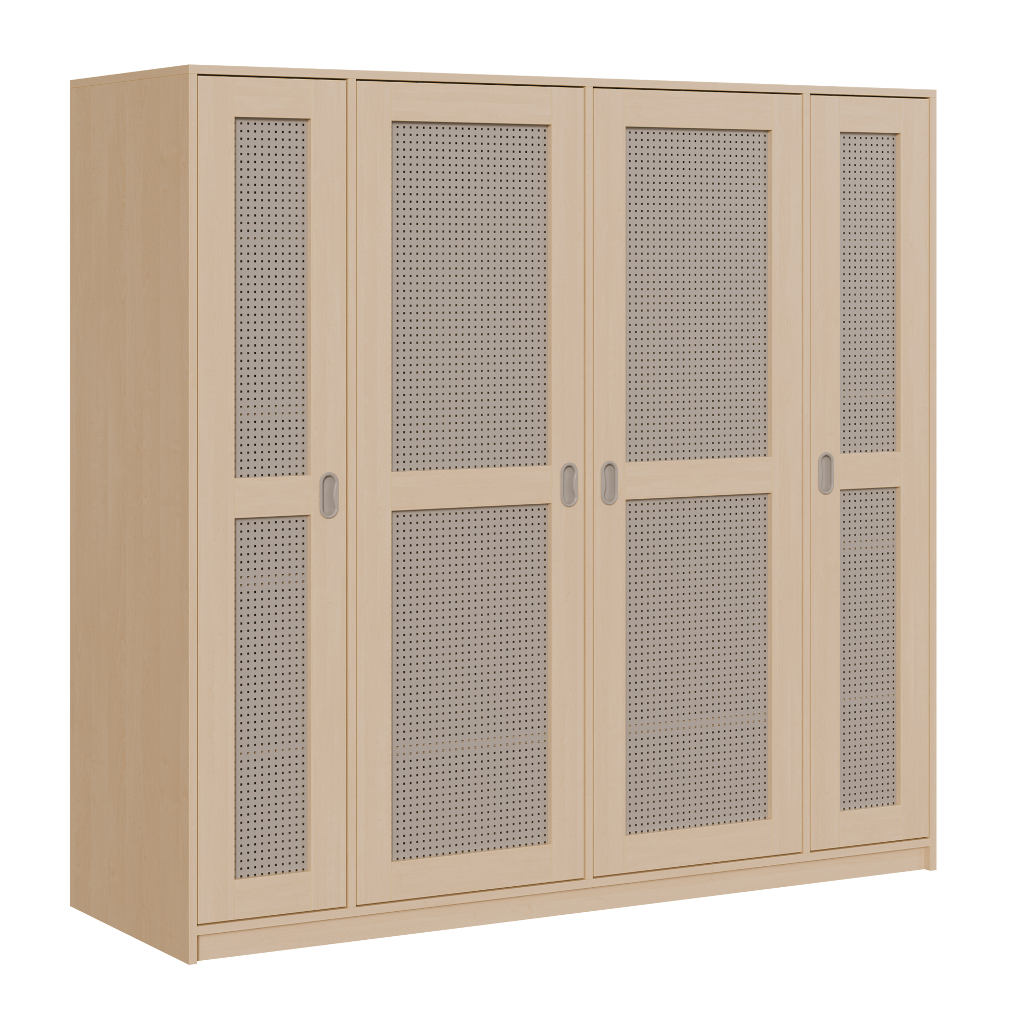 B/H/T: 158x190x67 cm, 4türig für bis zu 8 Matratzen, Bettwäschefächer, Korpus mit Lochblechtüren